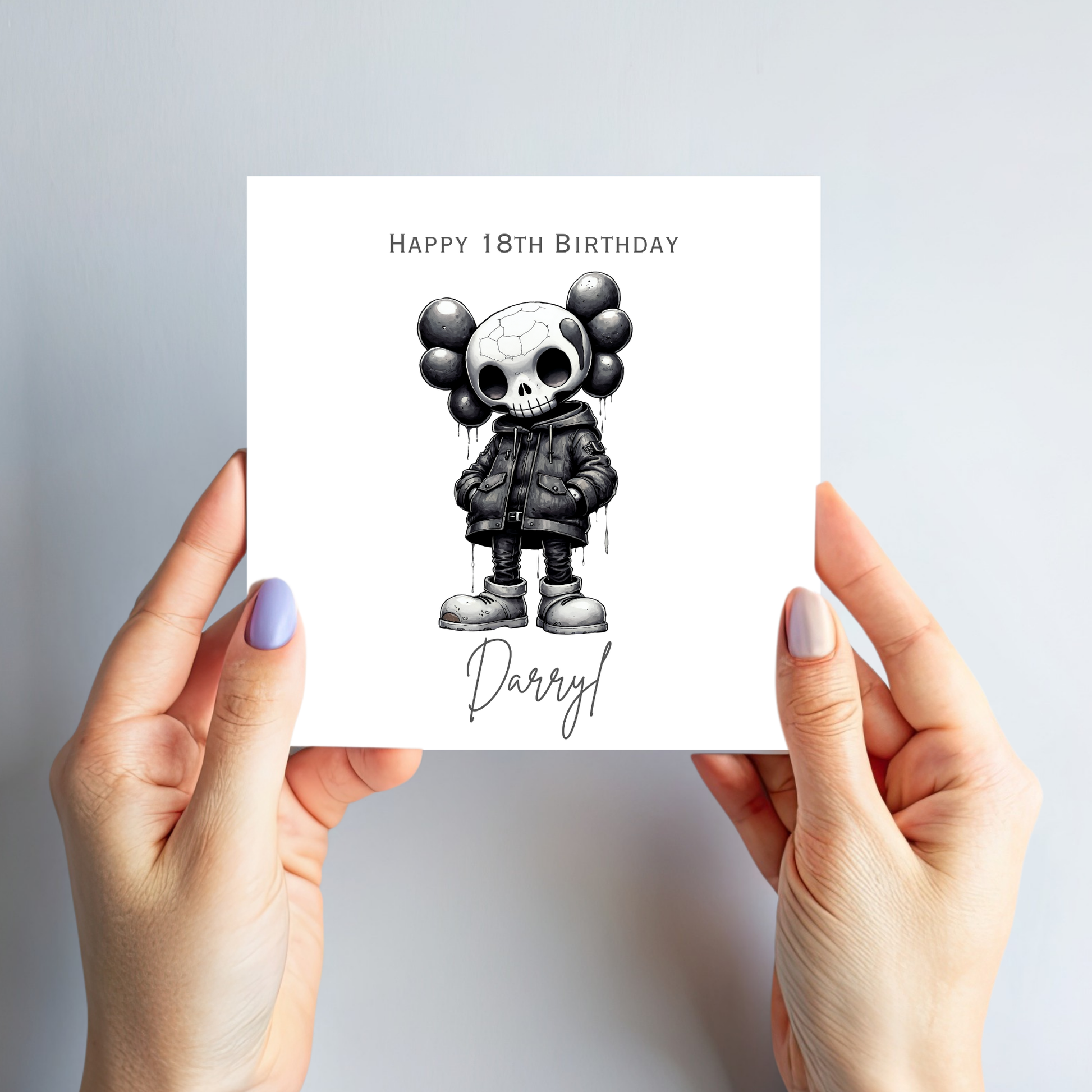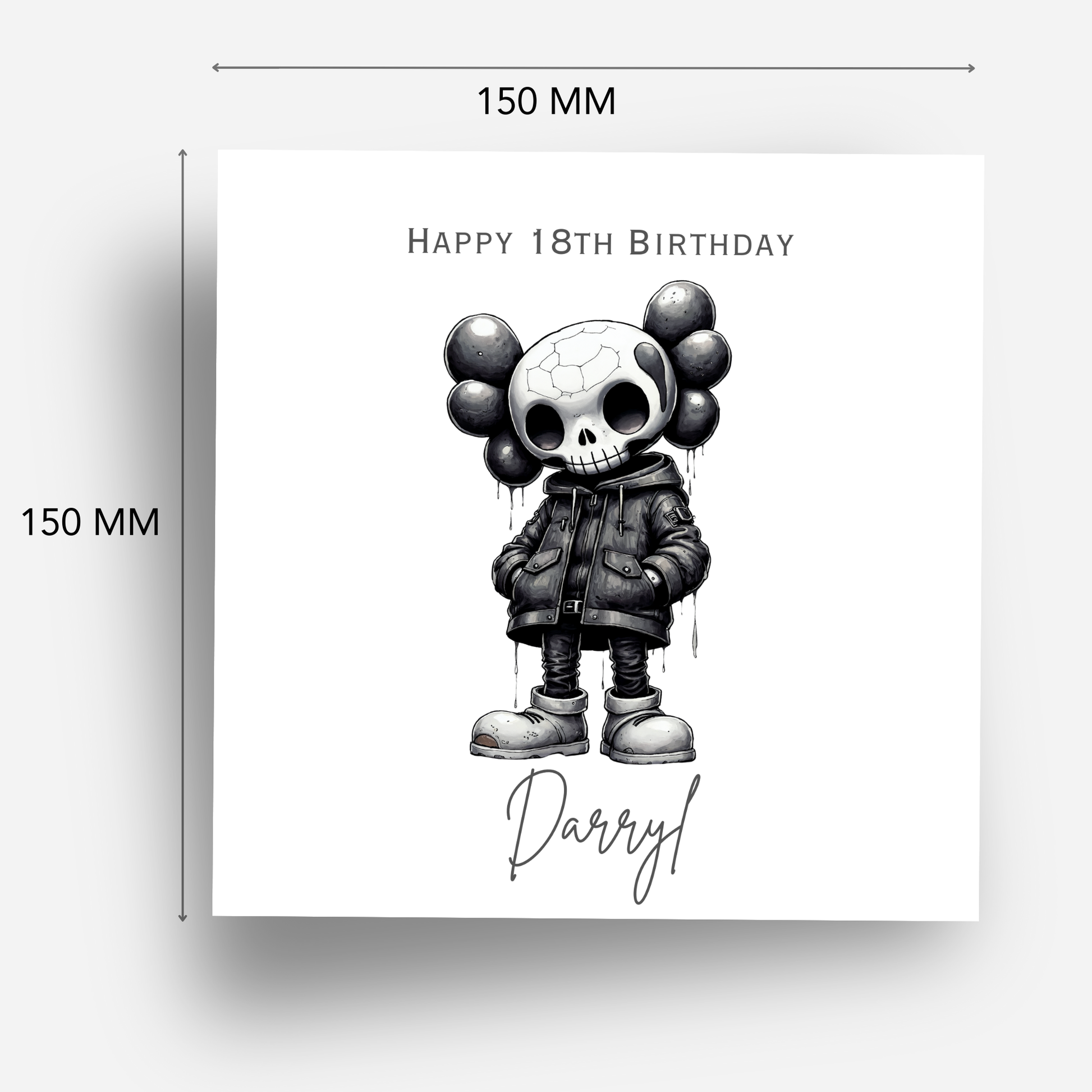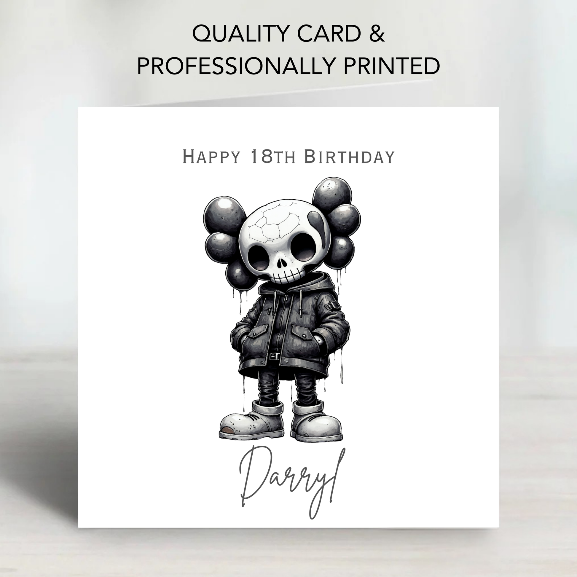 Make a bold statement with this gothic-style personalised birthday card, featuring a living dead character with creepy dark tones.