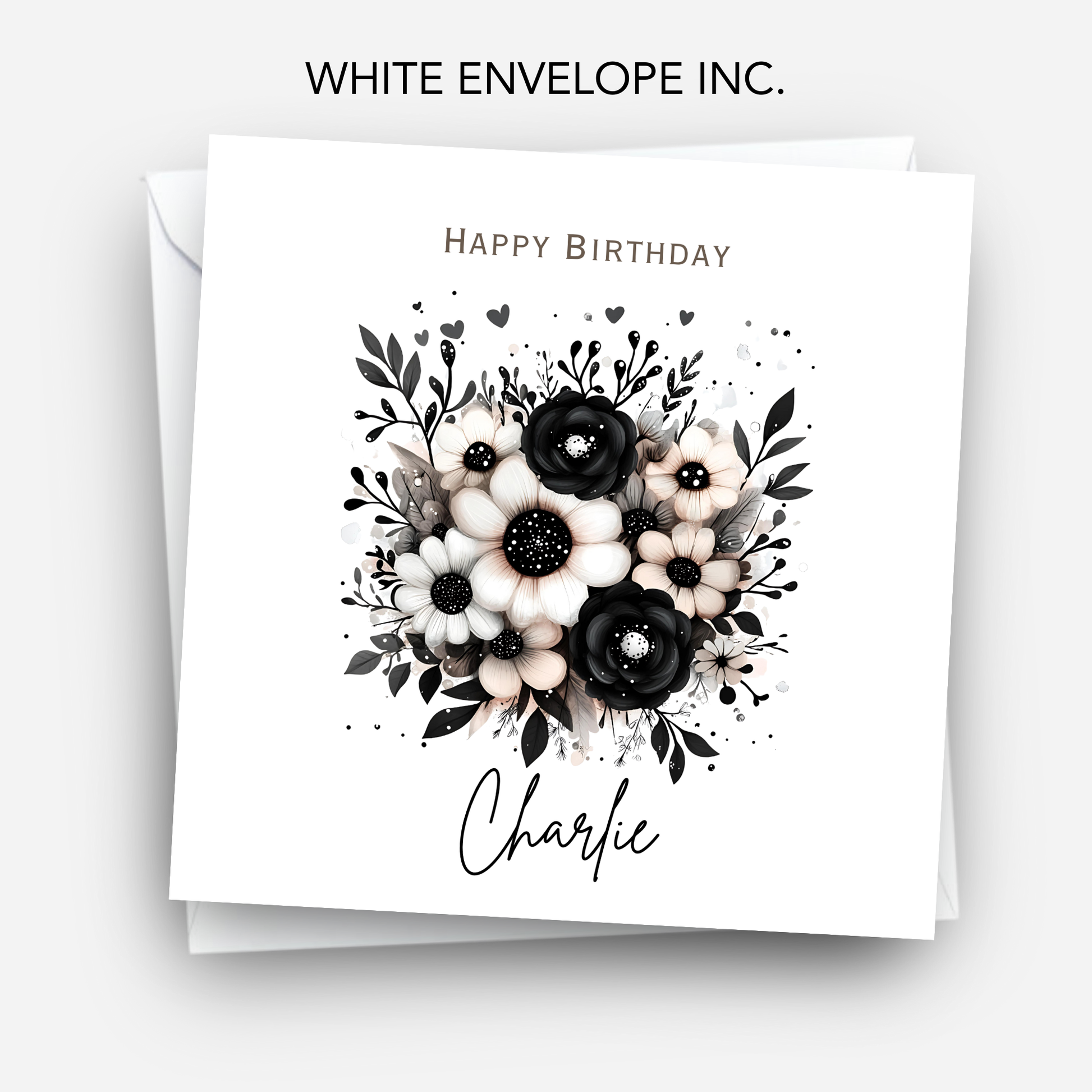 Celebrate a special day with this personalised gothic birthday card, featuring a dark flower design.