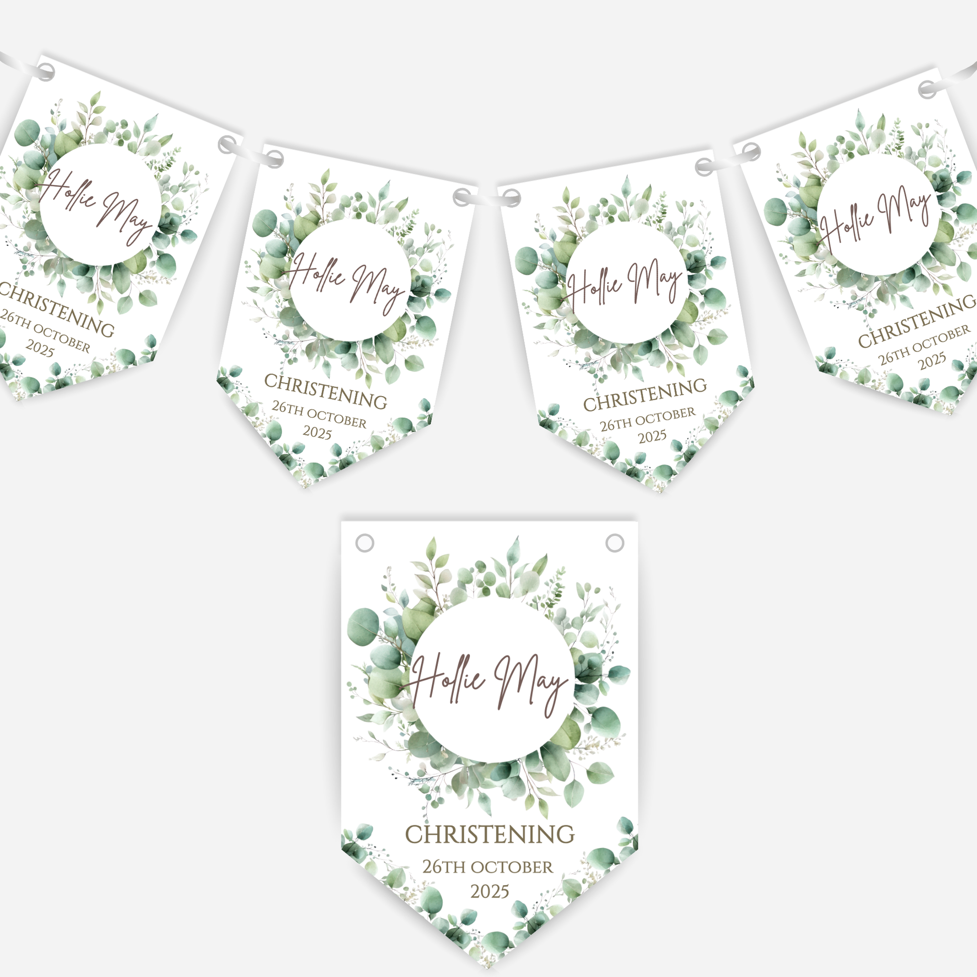 Featuring a soft natural greenery design, this elegant custom banner is ideal for baby boys or girls. Perfect for decorating your venue and creating a peaceful, timeless atmosphere.