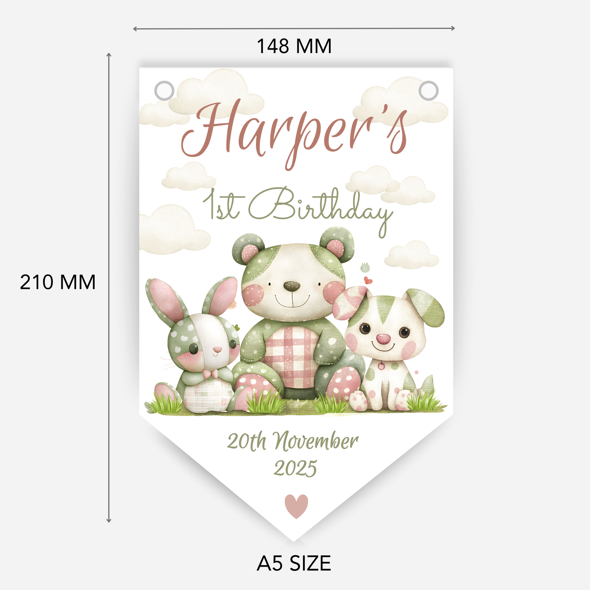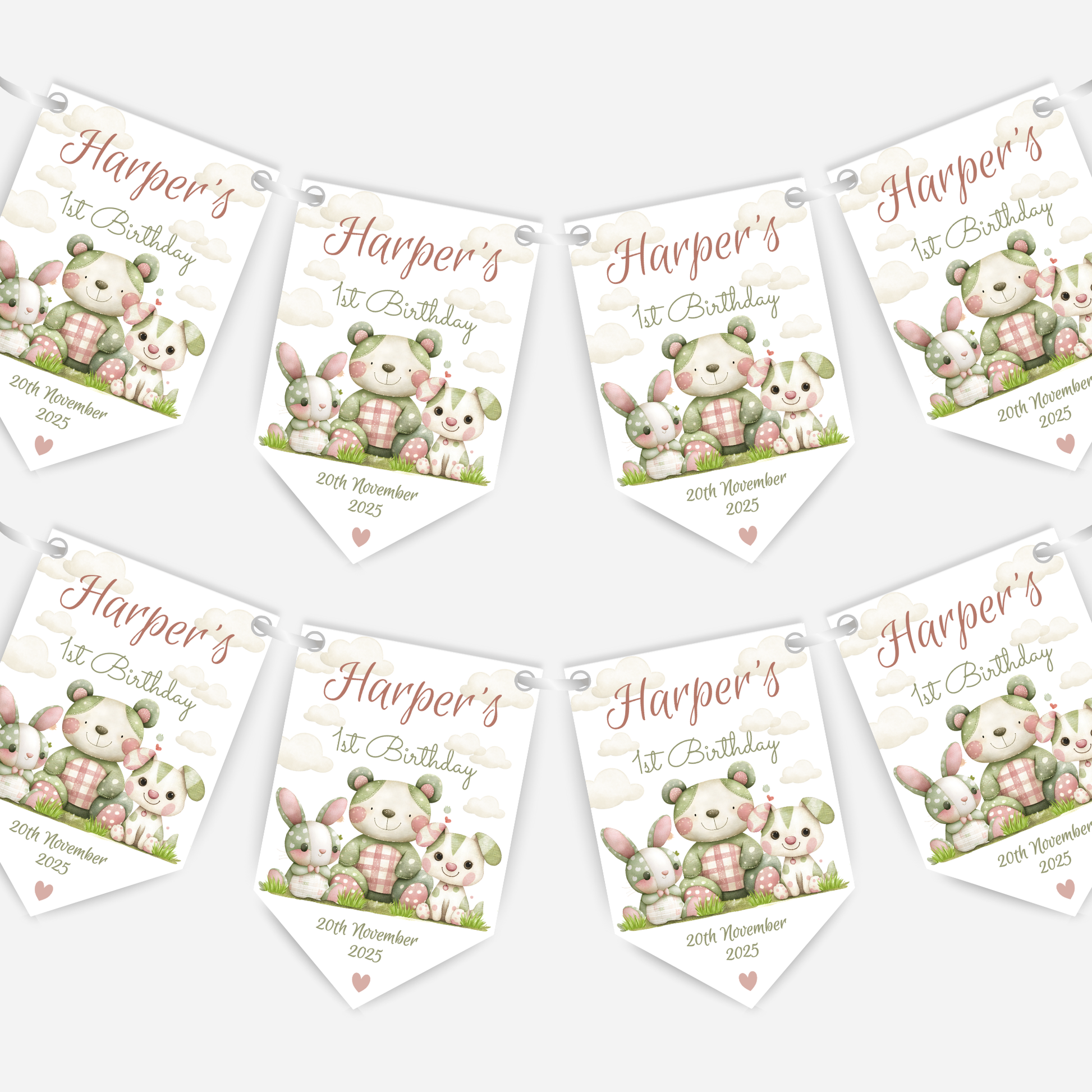 Featuring sweet animal's in a pastel and patchwork design in soft colours, this custom name banner is perfect for baby and toddler birthdays. Whether itโs for a boy or a girl, this bunting adds charm and warmth to your party setup or nursery.