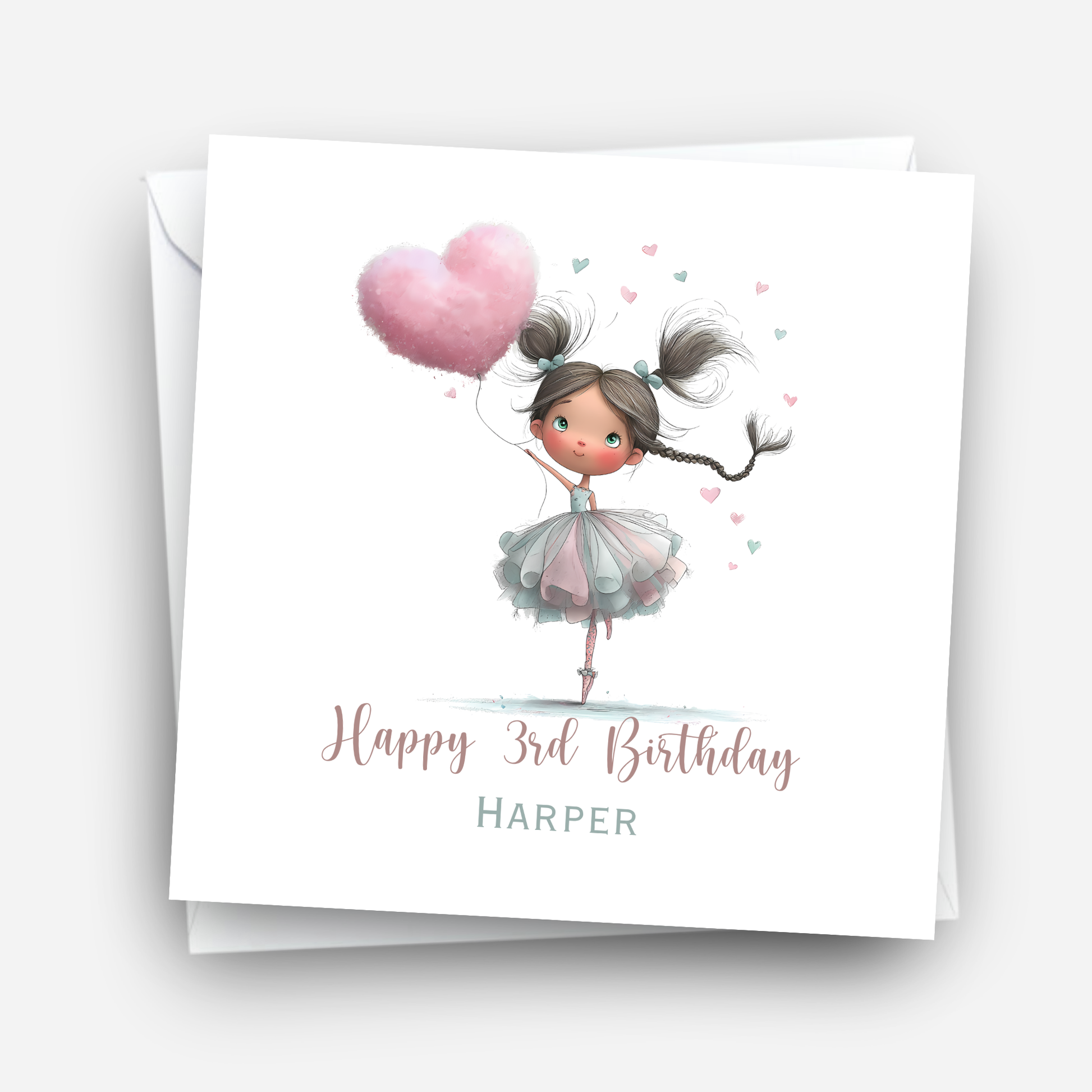 Make their birthday extra special with this personalised birthday card, featuring an adorable ballerina girl design. A sweet and charming design that’s perfect for girls, daughters, granddaughters, nieces or any child.