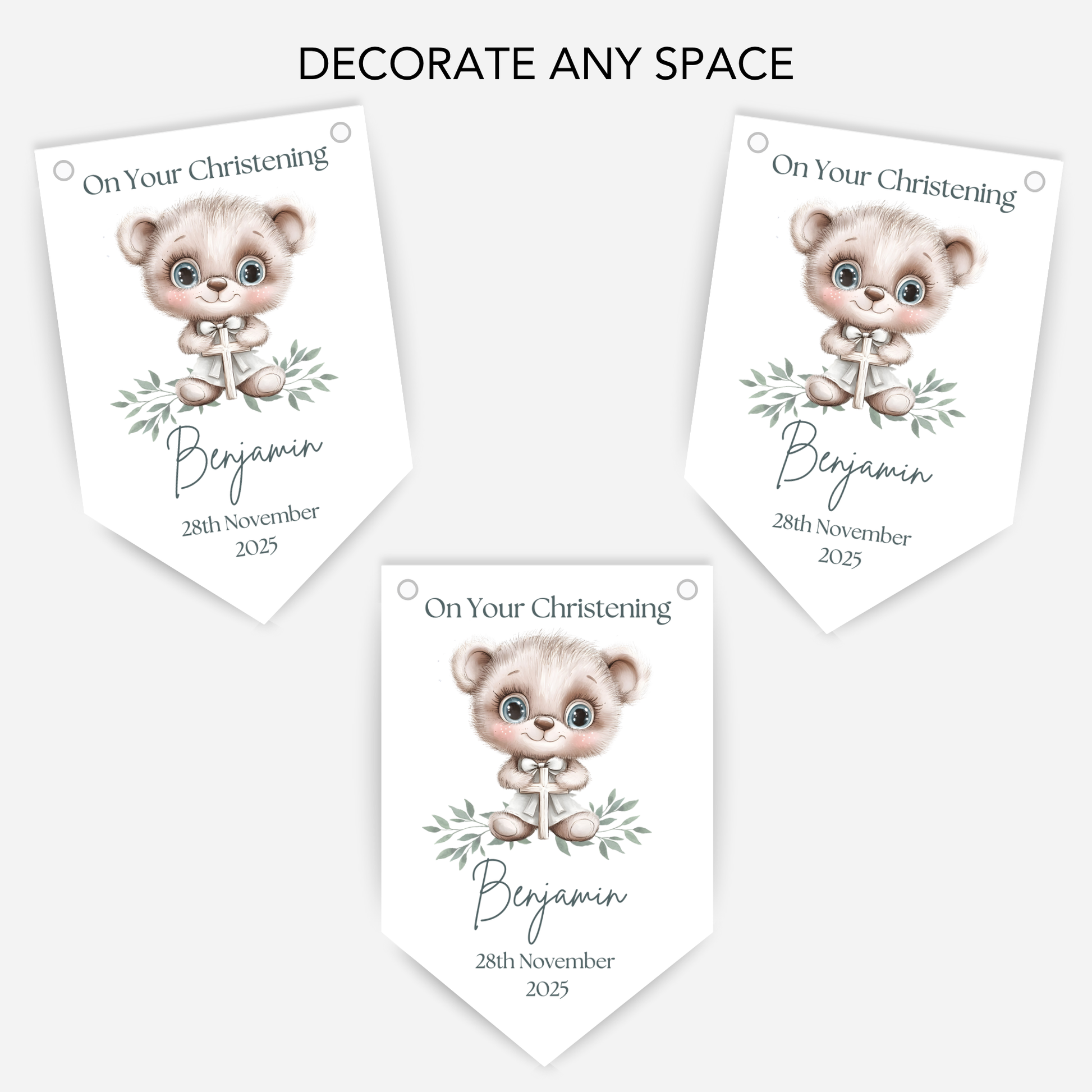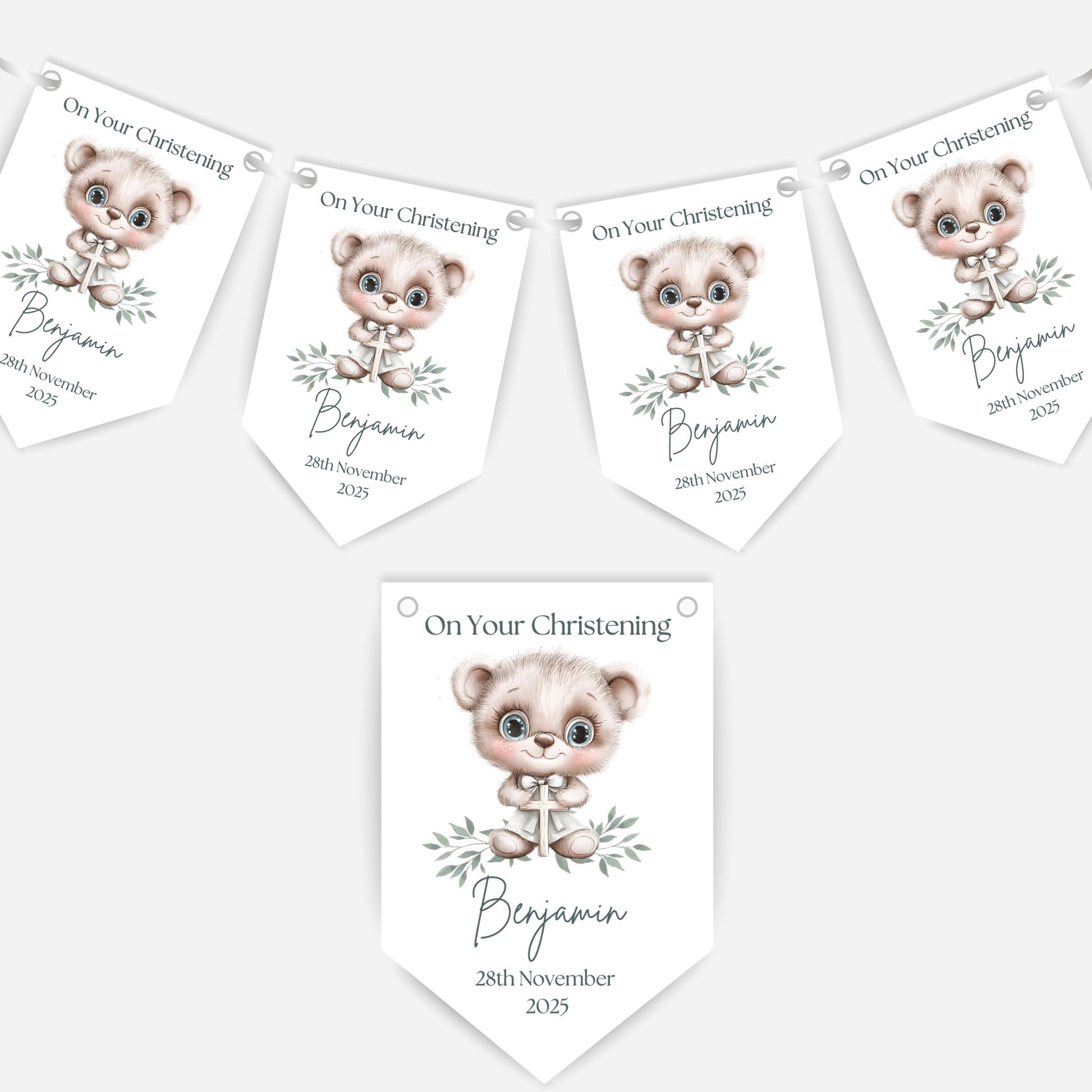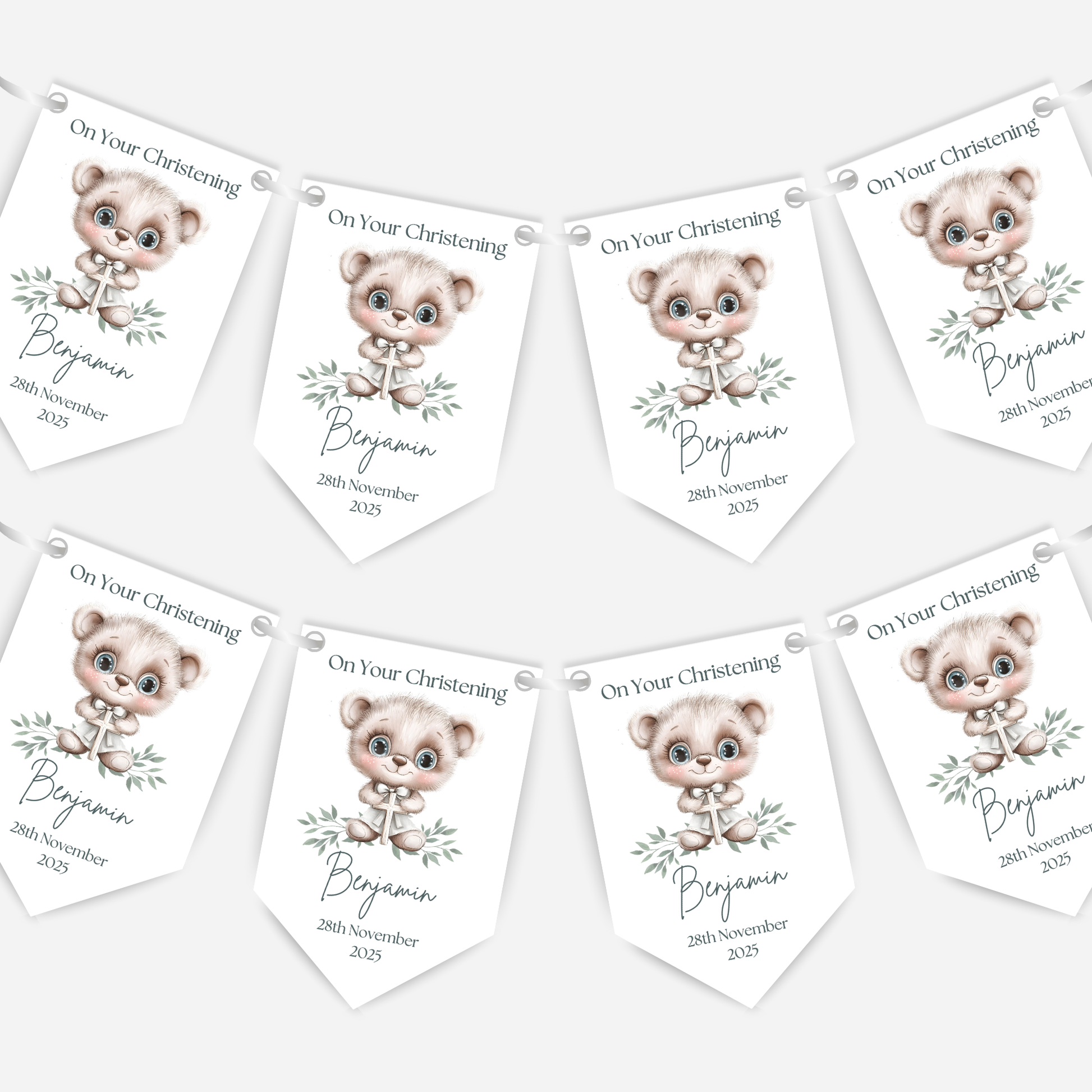Add a beautiful finishing touch to your celebration with this printed and personalised Christening or Baptism bunting.