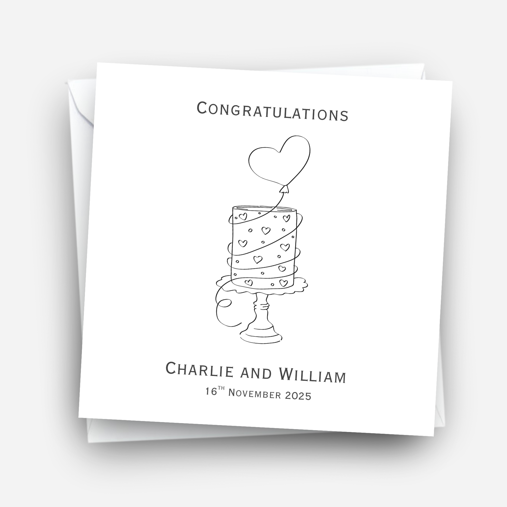 Toast the happy couple with this elegant congratulations card featuring a stylish illustration of a celebratory cake design.