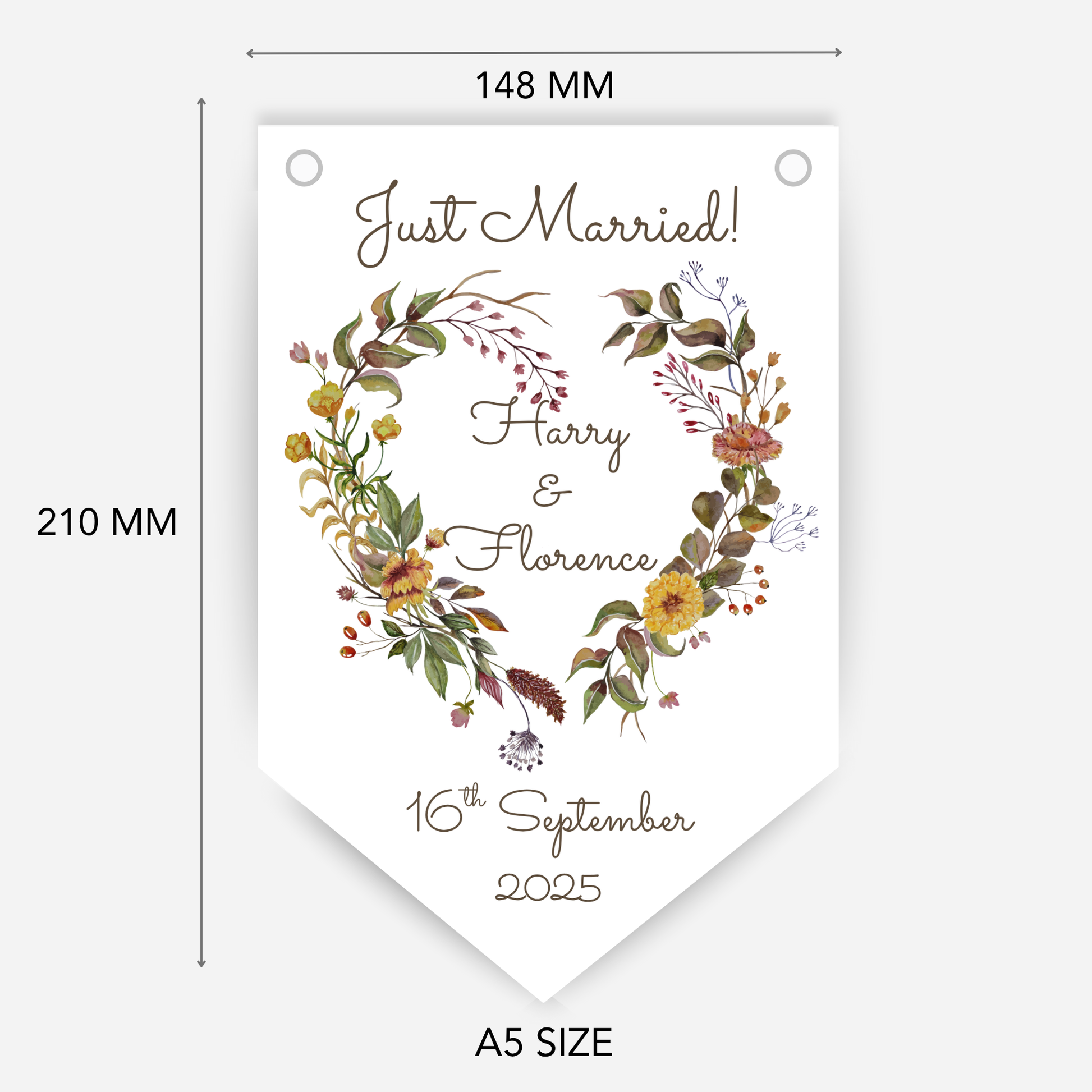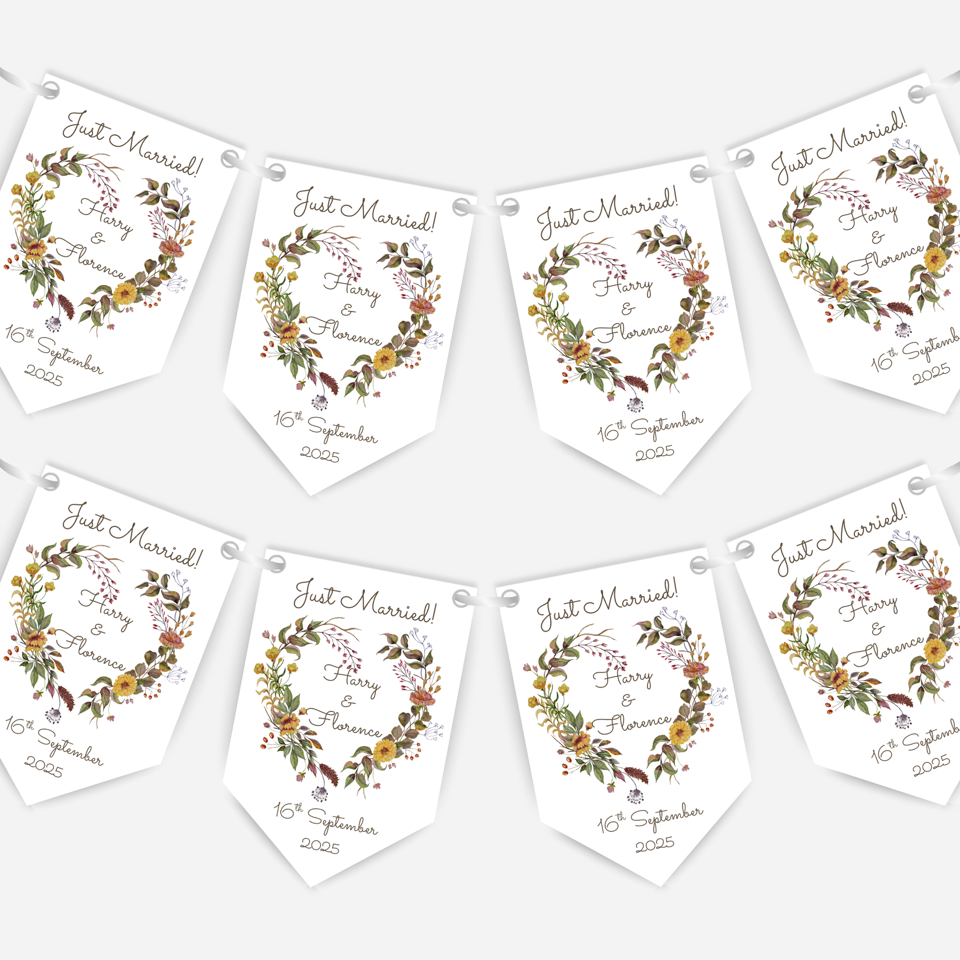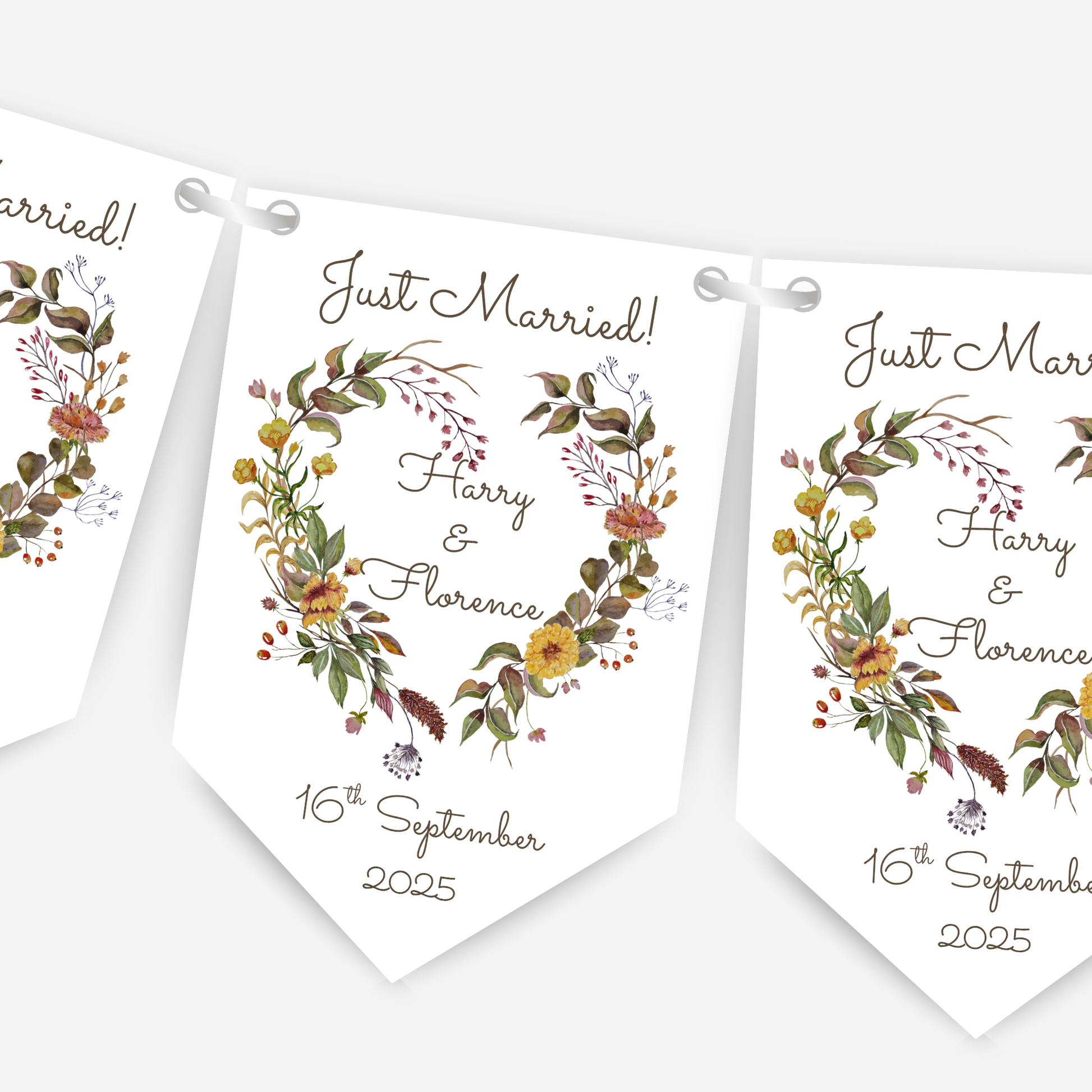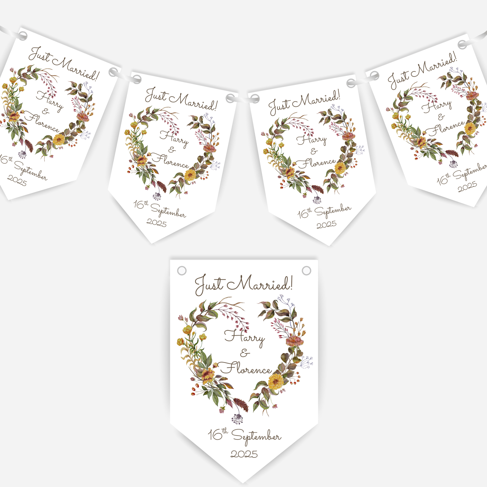 Celebrate the newly engaged or recently married couple with this printed and personalised engagement bunting featuring a beautiful rustic heart design.