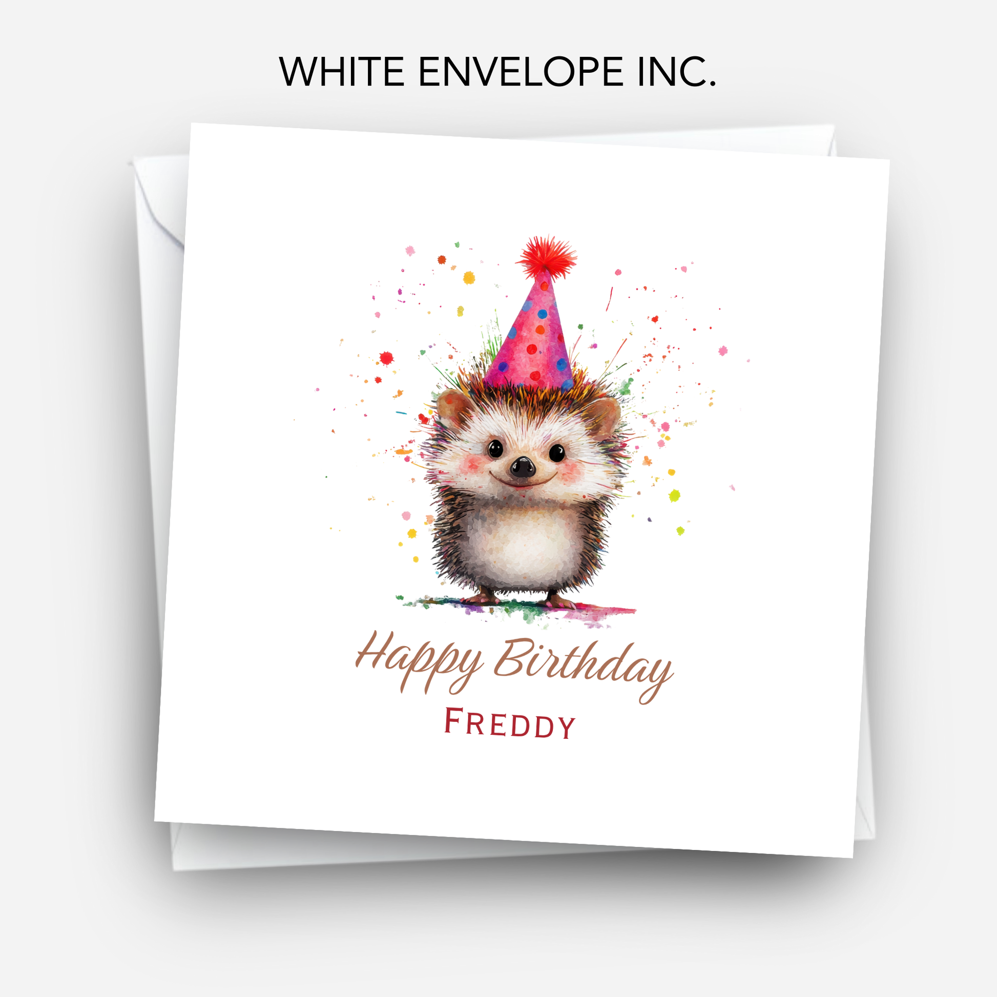 Bring a burst of fun to their celebration with this personalised fun hedgehog birthday card, featuring a quirky hedgehog with a party hat.