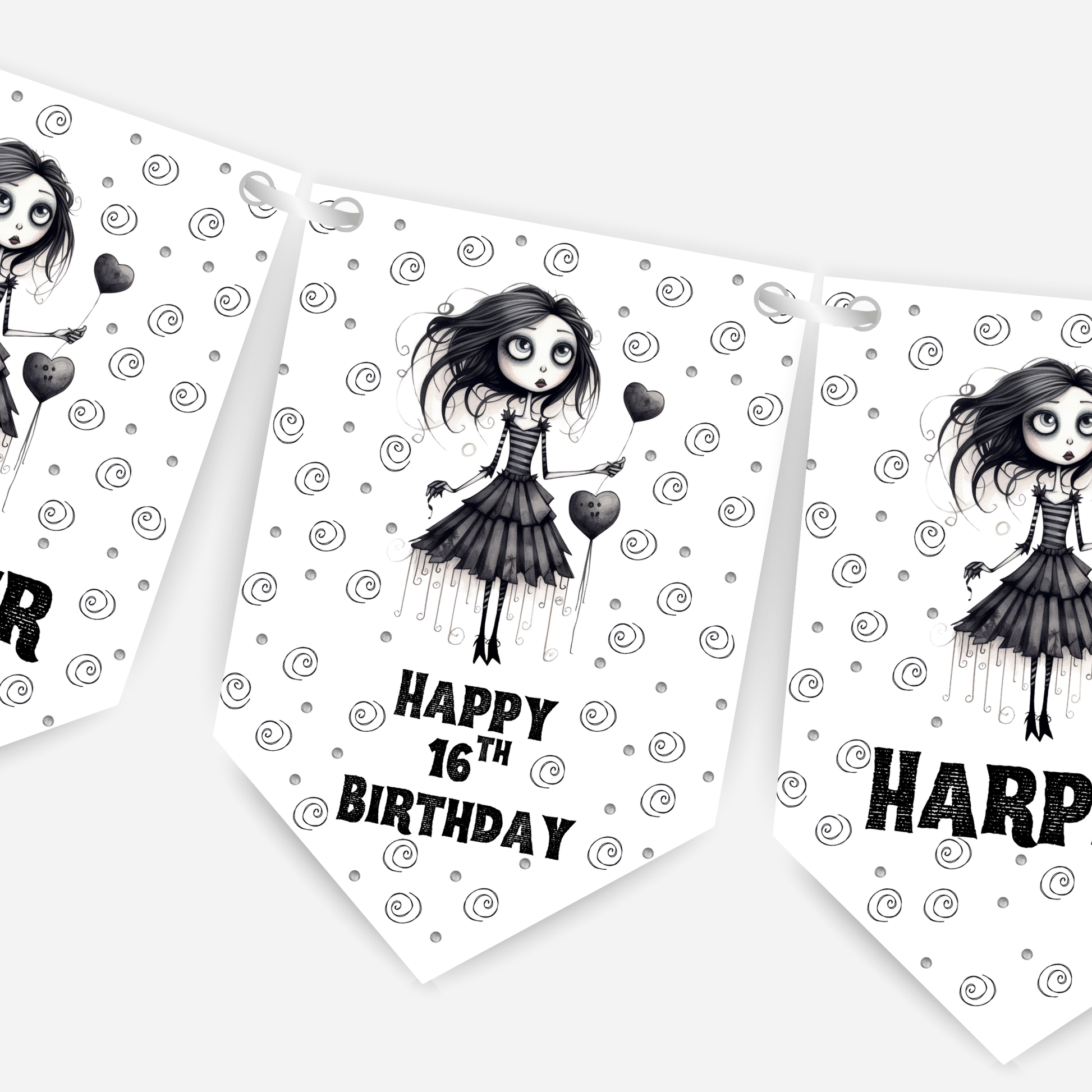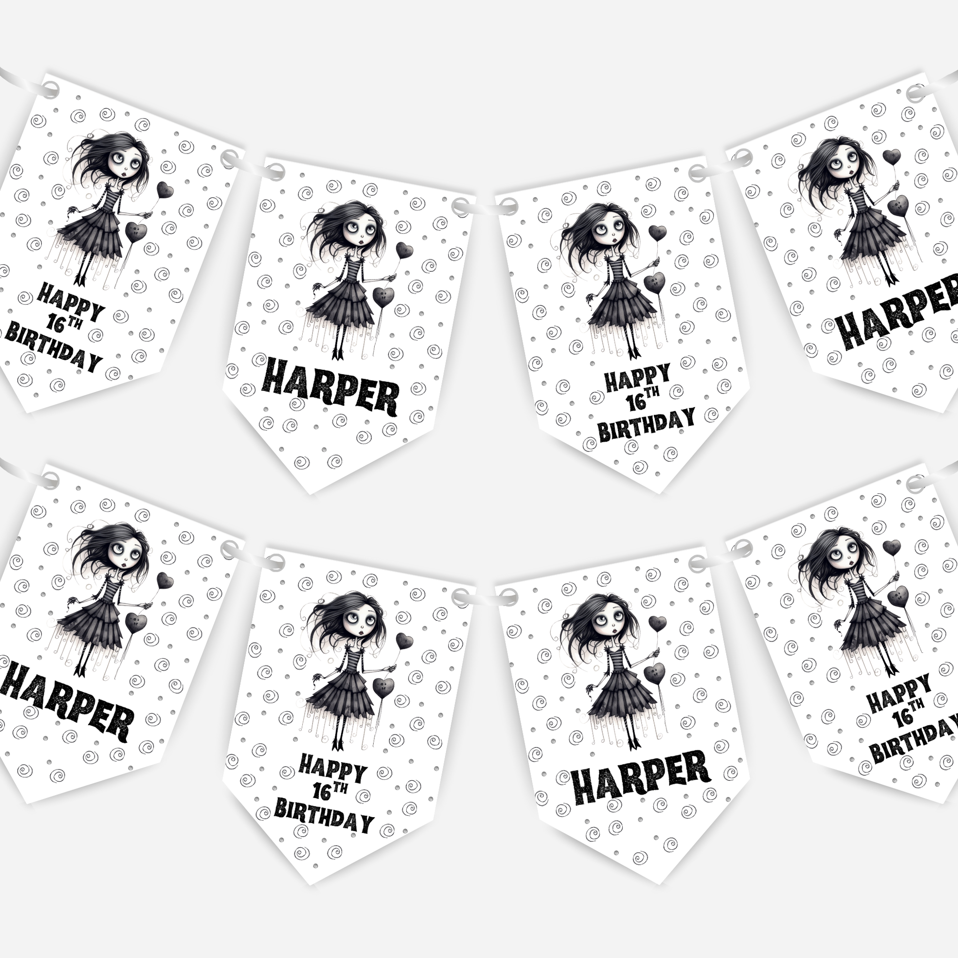 Ideal for gothic-themed parties, alternative birthdays, or anyone with a love for a different design, this custom banner is a striking decoration that reflects their unique personality. Beautifully printed and one-of-a-kind, it's the perfect way to stand out on their special day.