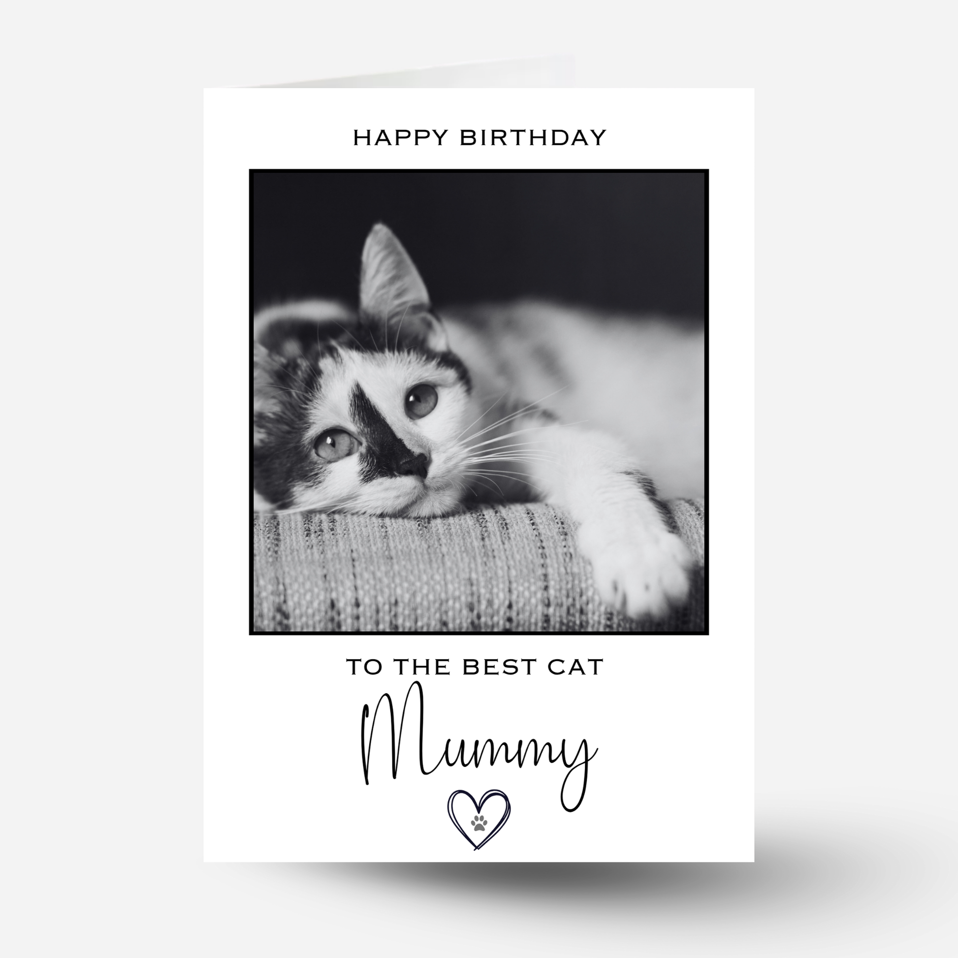 Celebrate the ultimate cat lover with this personalised “Happy Birthday to the Best Cat Mummy” photo card, featuring your chosen photo, name and any wording on the front. The perfect birthday card for proud pet mums who adore their furry best friend.