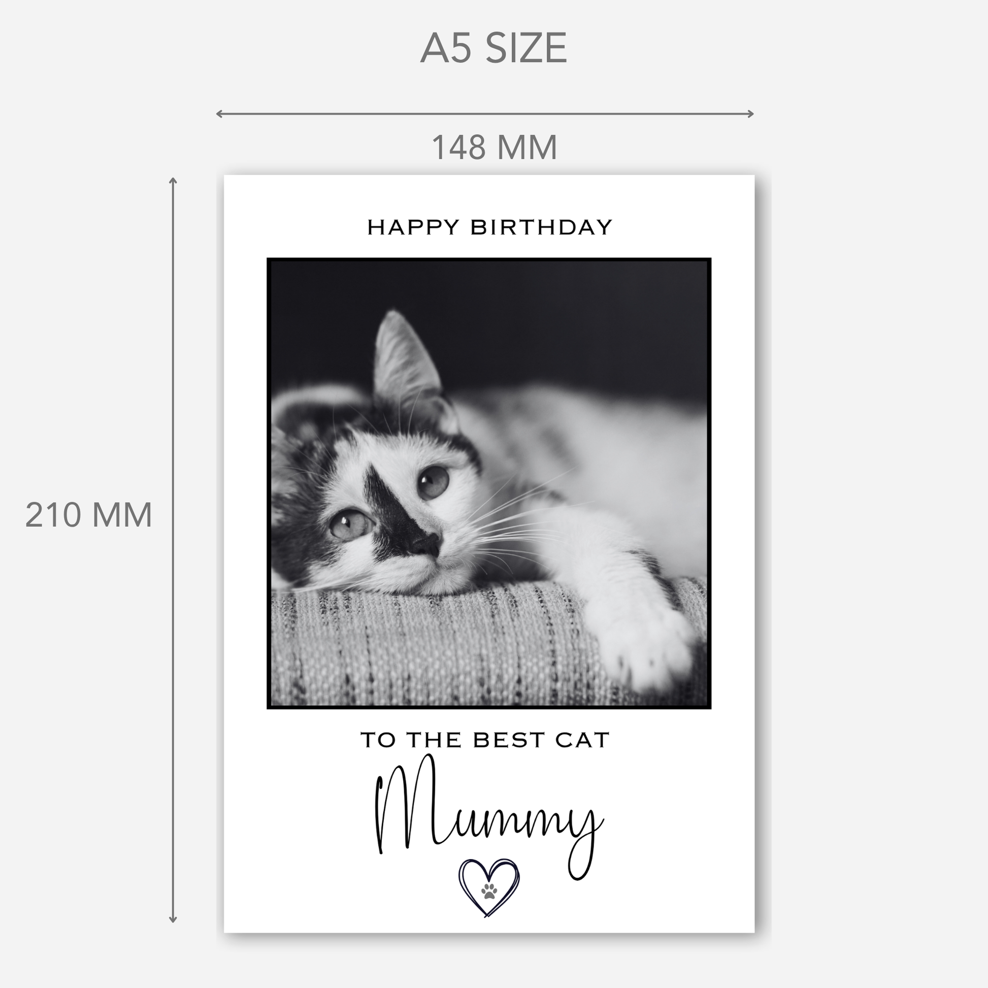 Printed on premium A5 cardstock and supplied with a white envelope, this custom cat lover birthday card is ideal for partners, friends or family who treat their cat like family. Add your own message inside or send it directly to make their day extra special.