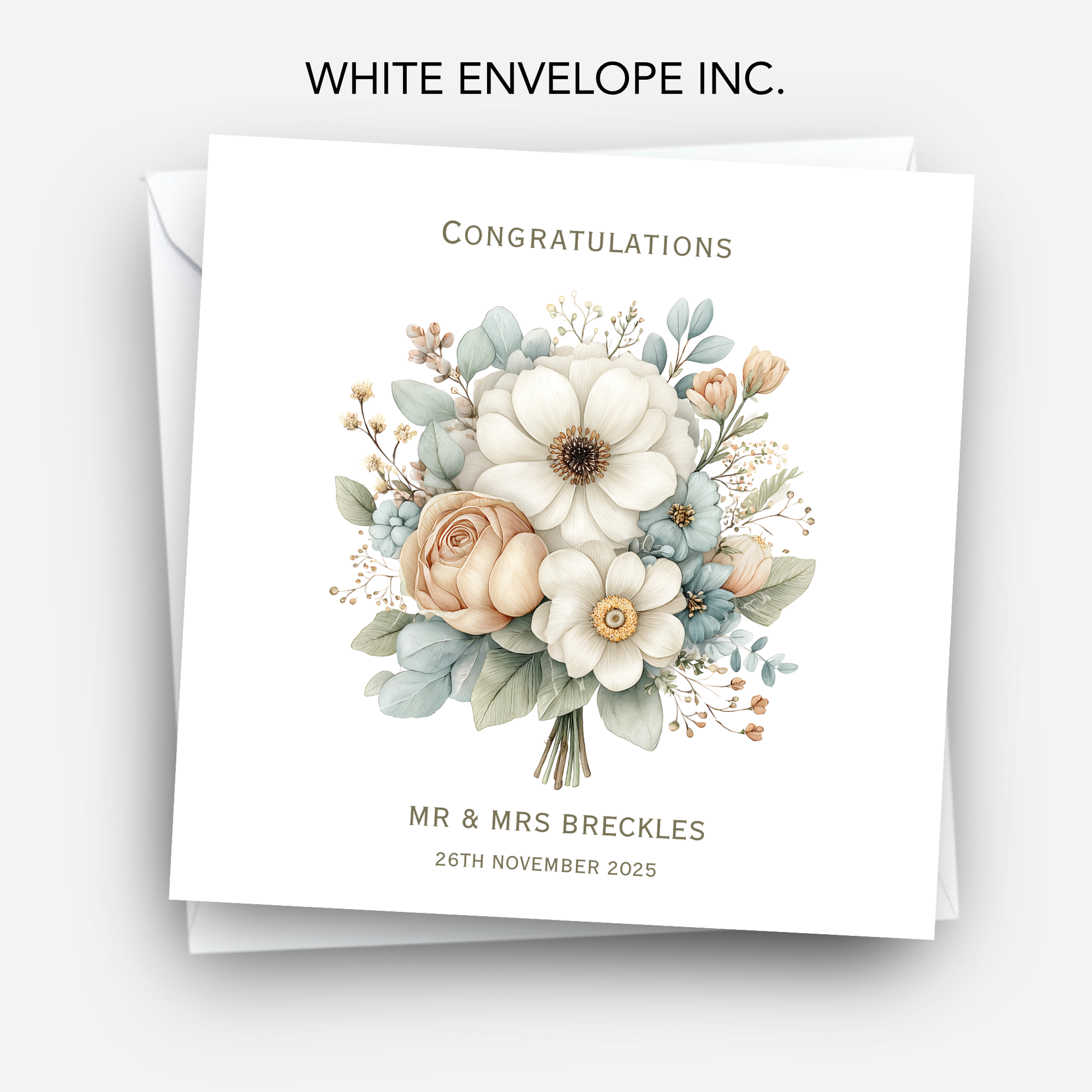Celebrate their wedding day with this beautifully printed card featuring a delicate floral bouquet.