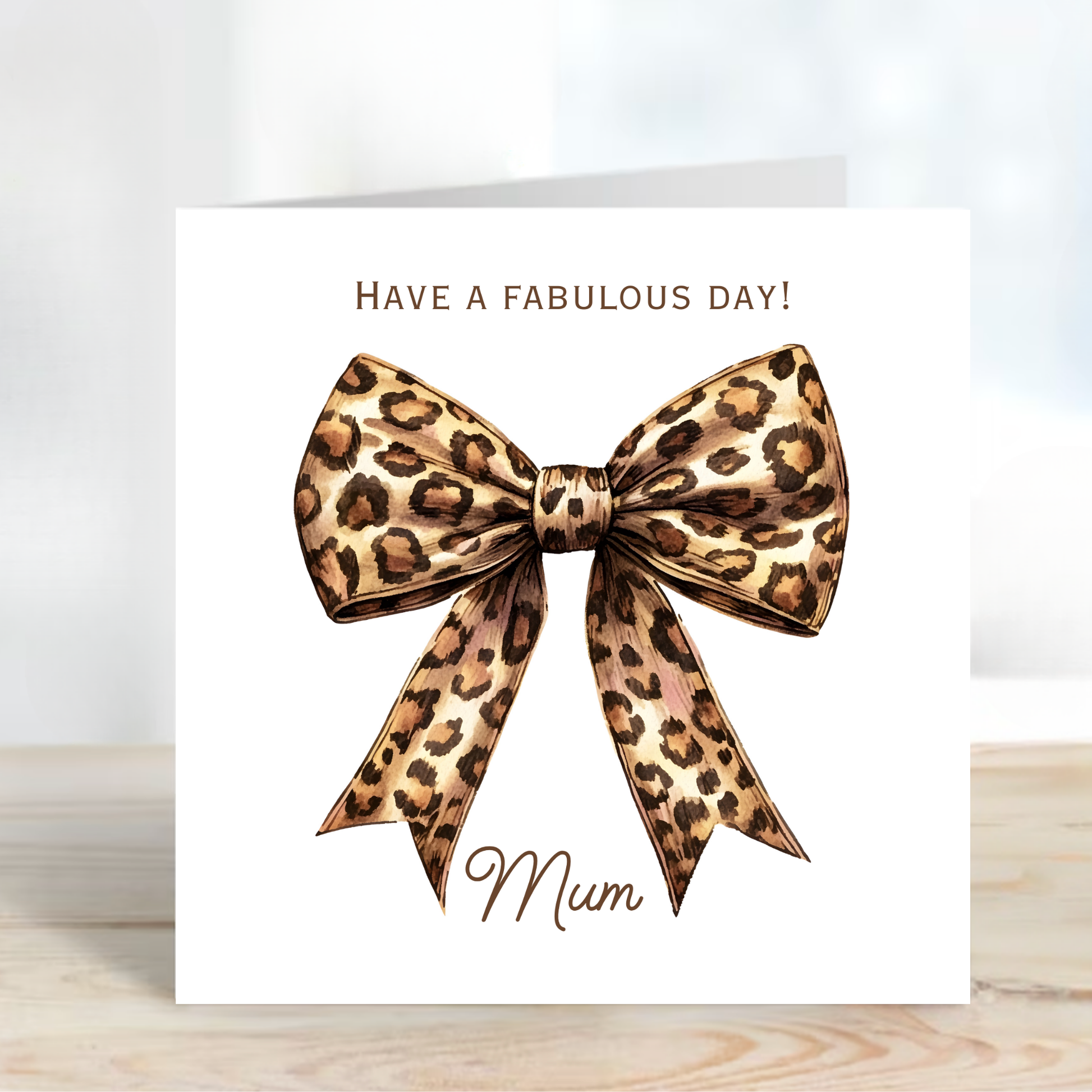 Make her day extra special with this Personalised Mother’s Day Card, printed with your own wording and finished with a funky leopard print bow.