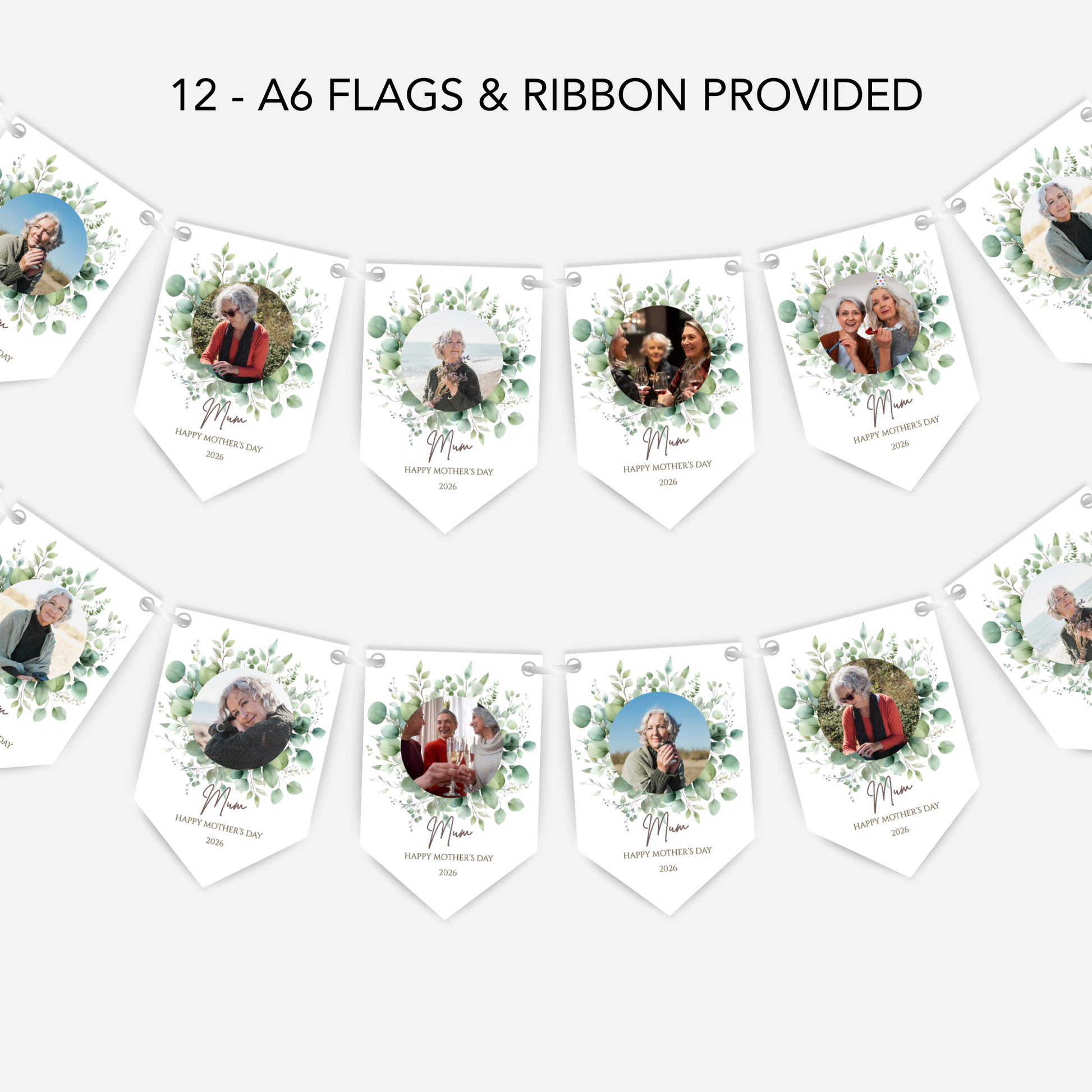 Celebrate the special lady in your life with this personalised smaller sized Mother's Day Bunting, custom printed with the name ( Mum, Mummy, Mother, Nana, Mama Etc) and up to 12 of your favourite photos!