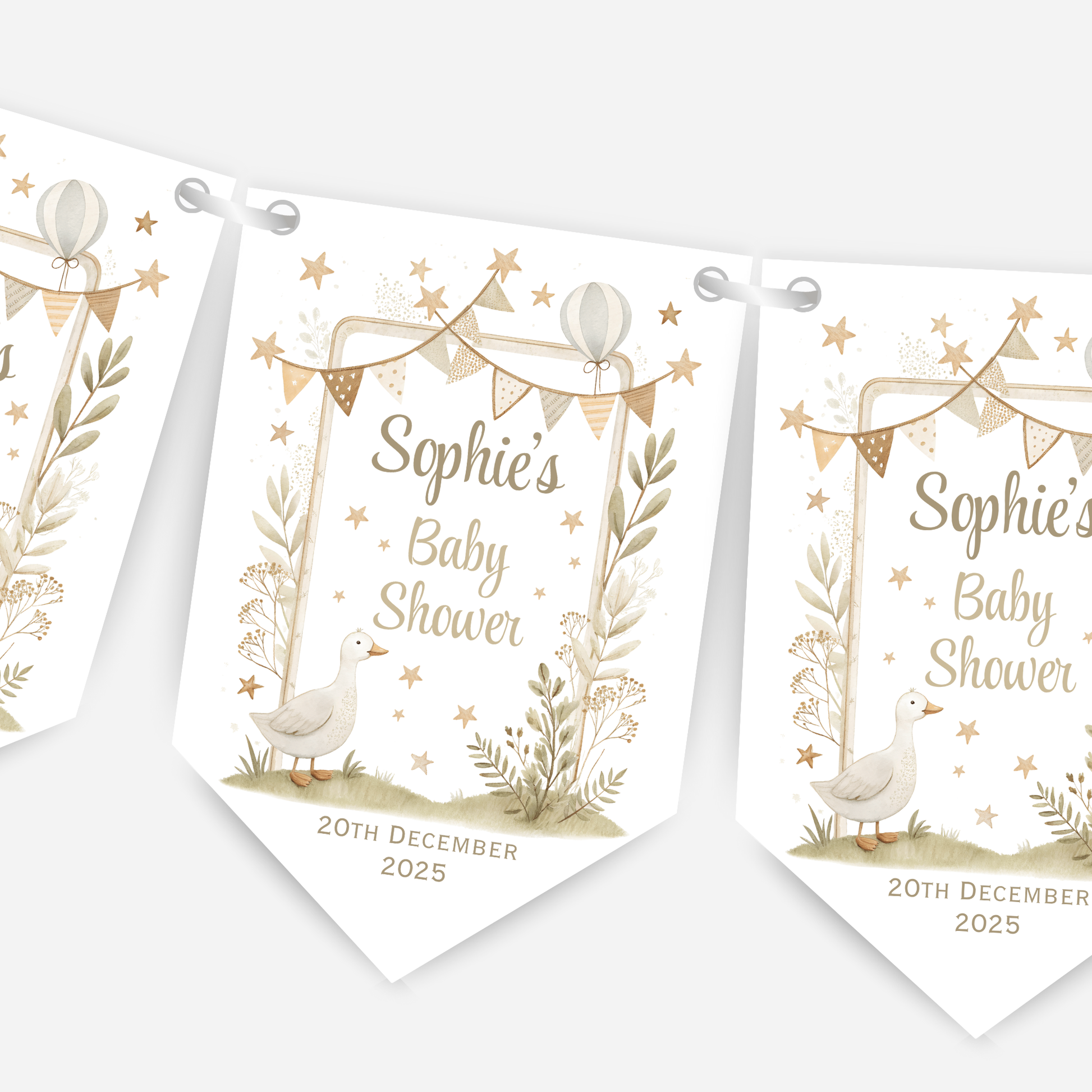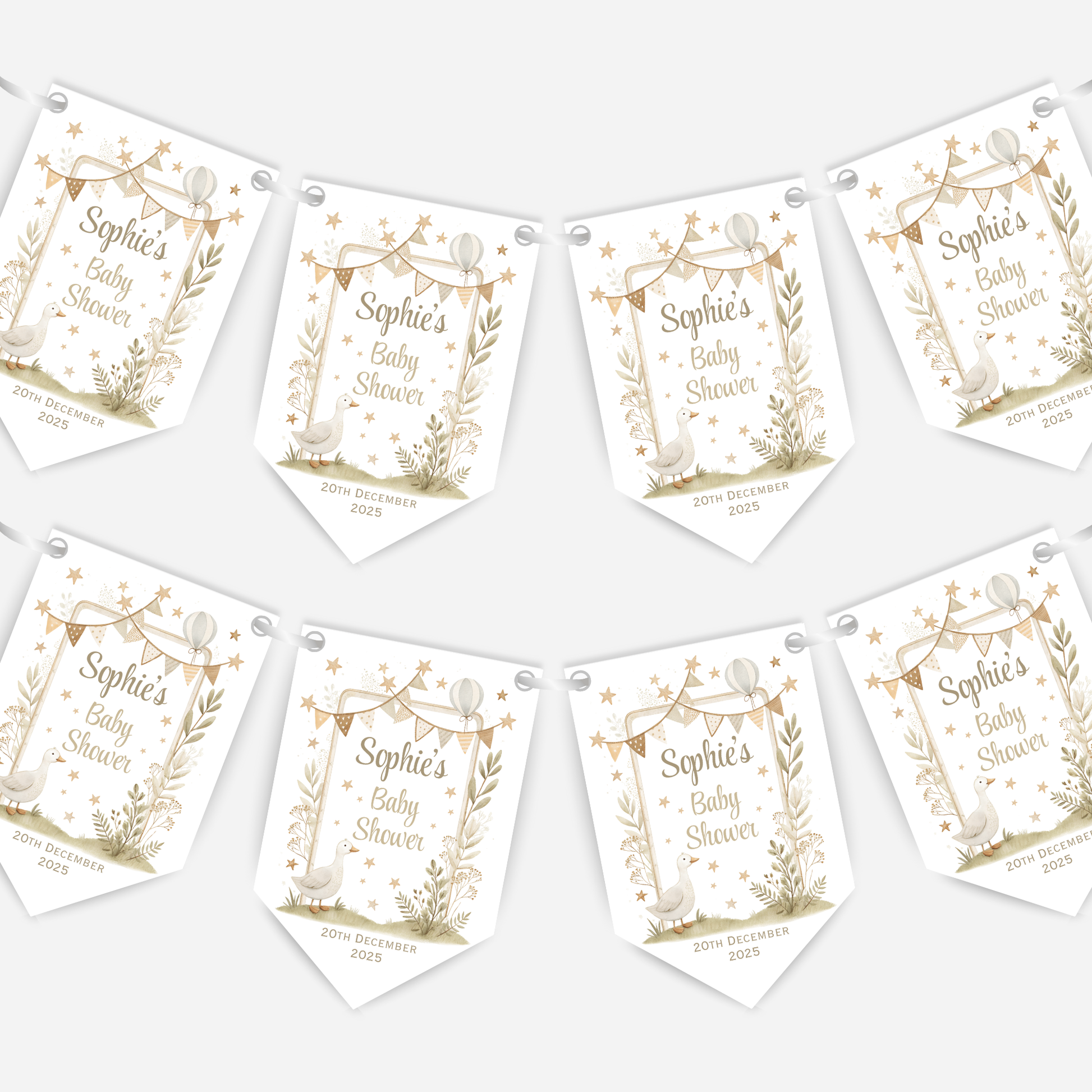 Add a charming and personal touch to your celebration with this personalised baby shower bunting, printed with the name and date of the big day.