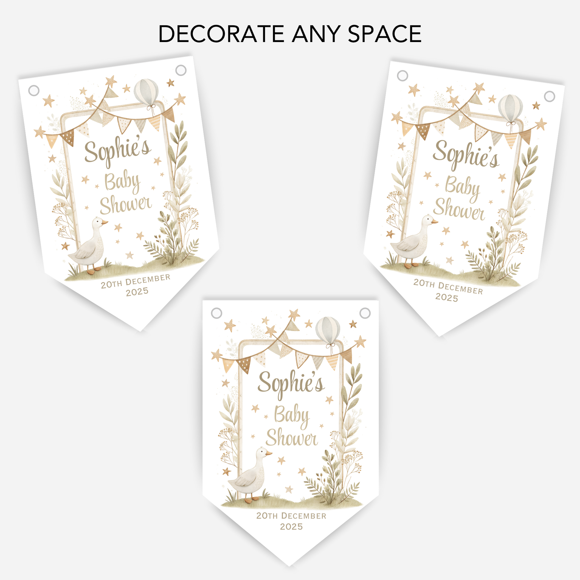 Beautifully printed and fully customised, this baby shower banner makes a lovely backdrop for gift tables, dessert displays, or photo walls. It’s a thoughtful keepsake too, making your event feel extra special and totally unique.