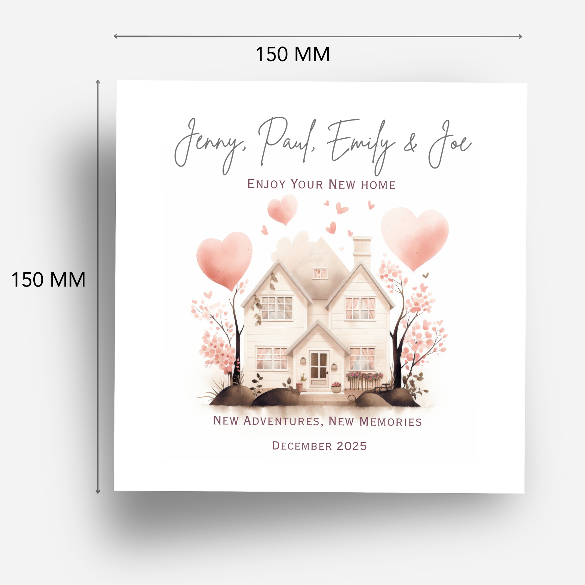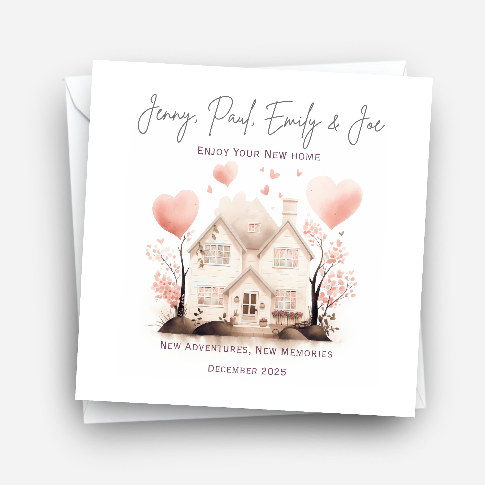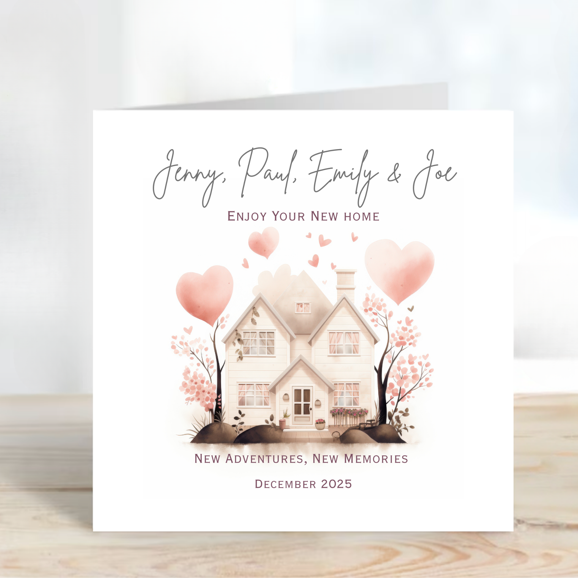 Personalised new home card with a lovely house design. A thoughtful housewarming card to celebrate their move and new beginnings.