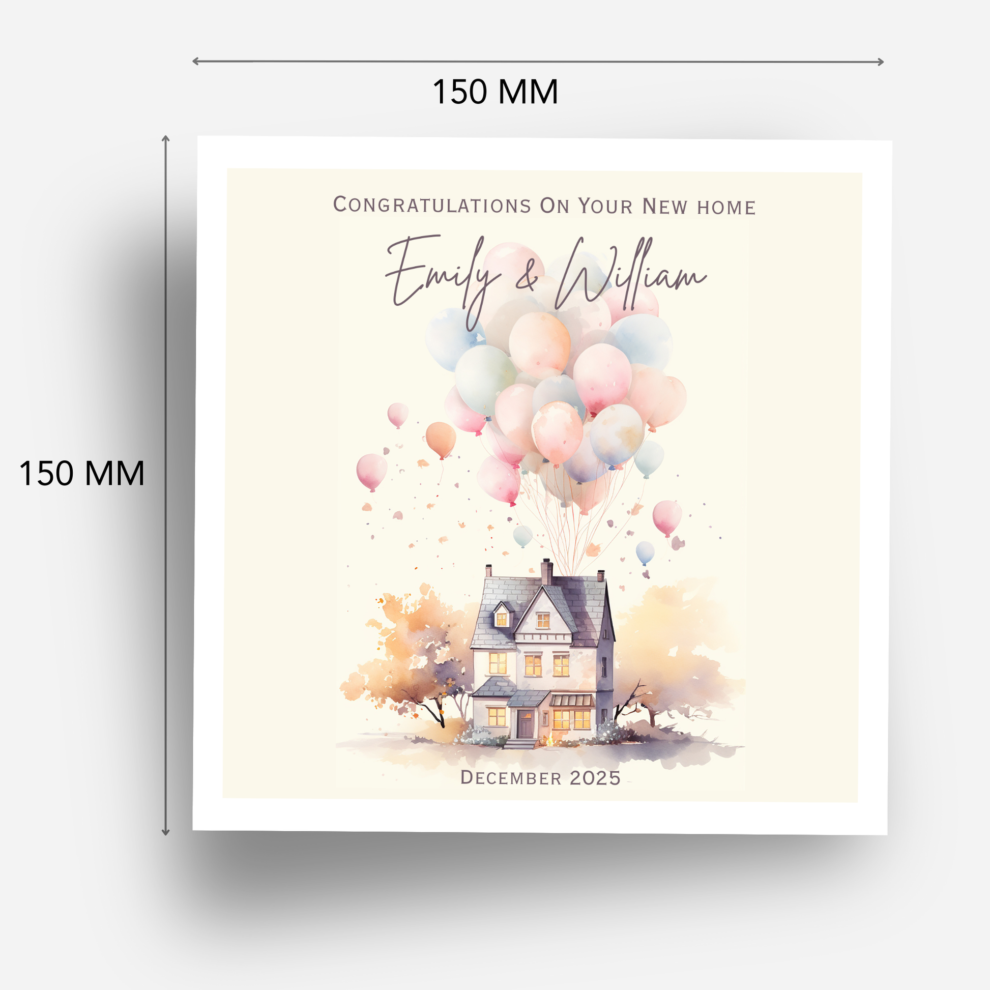 Personalised new home card with cute house design. A thoughtful housewarming card to celebrate their move and new beginnings.