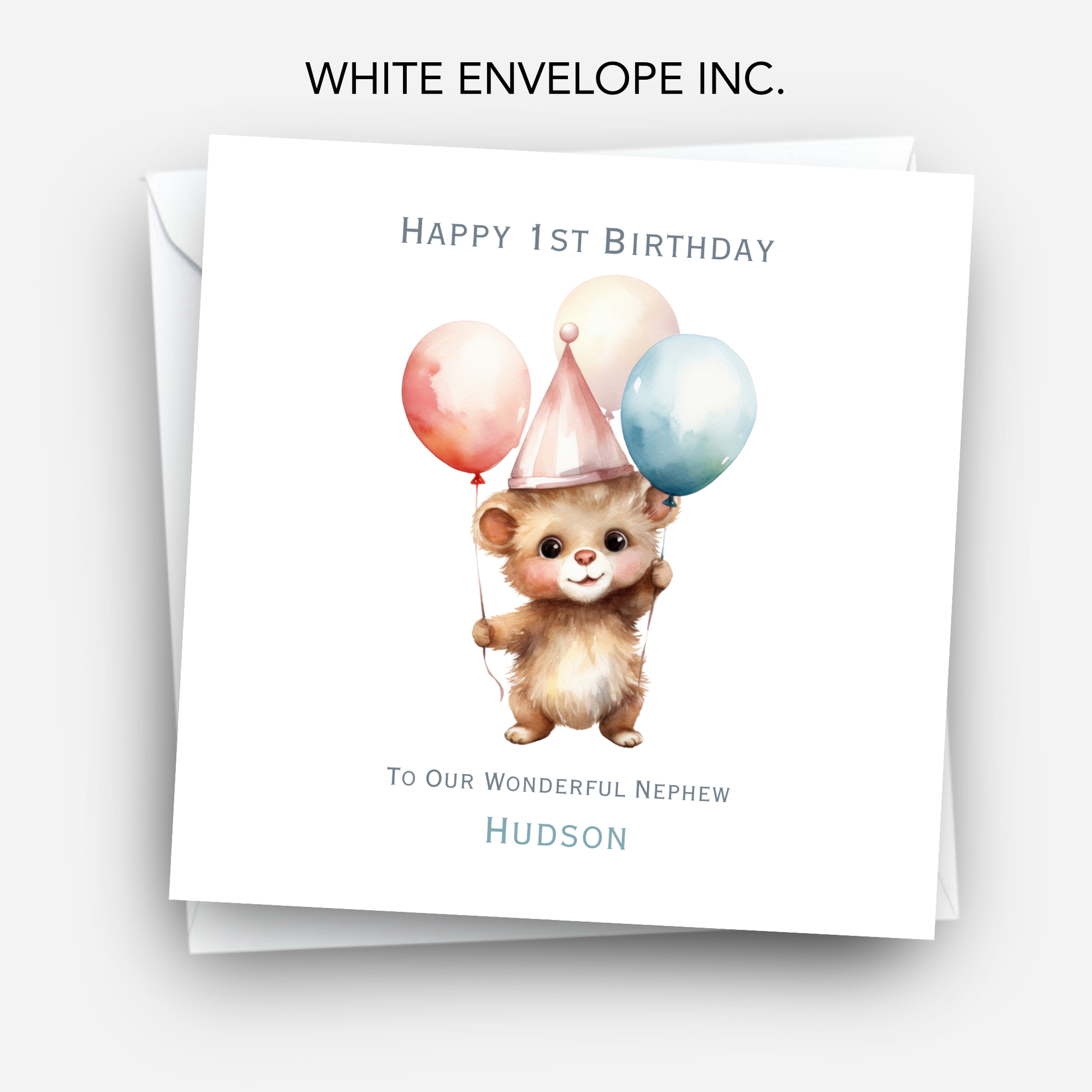 Make their special day extra sweet with this personalised teddy bear birthday card, featuring a cute illustration of a teddy and balloons. Perfect for boys or girls of any age — whether it’s for your son, daughter, grandson, granddaughter, niece, nephew or friend.