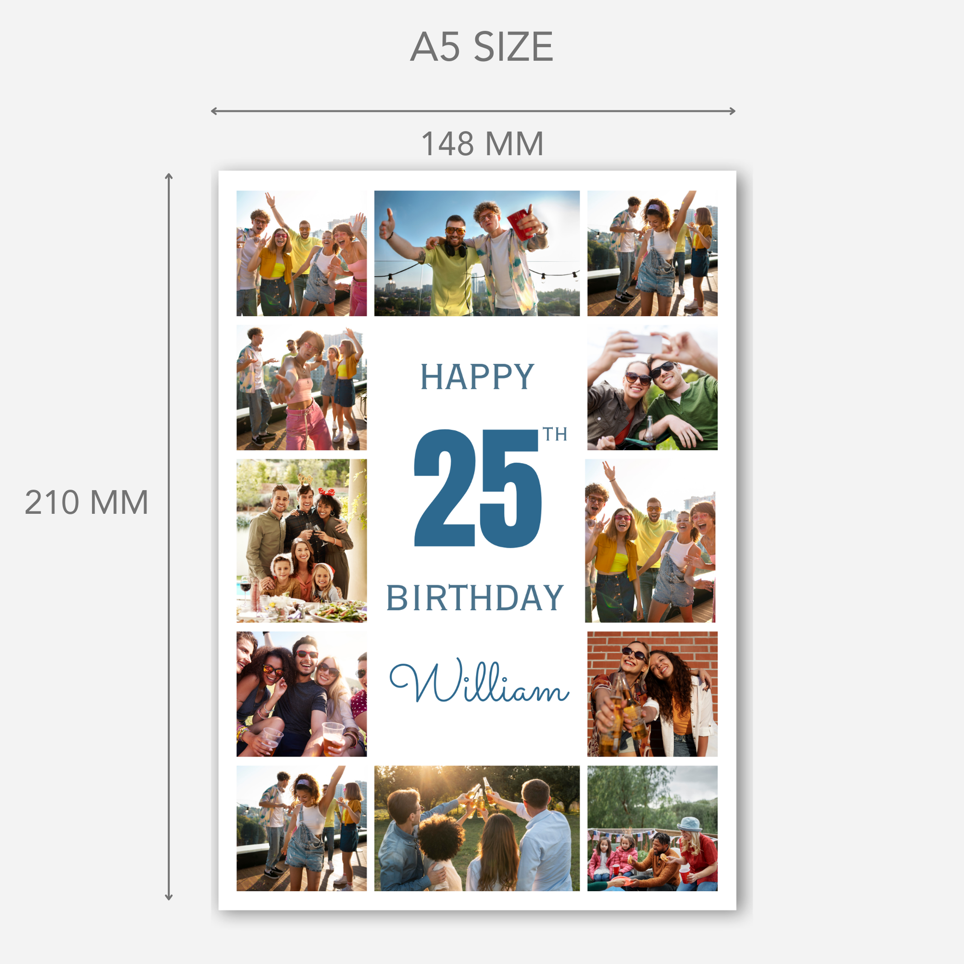 Personalised collage birthday photo card with 12 photos, name & age. A5 printed card with envelope, a unique keepsake for special birthdays.