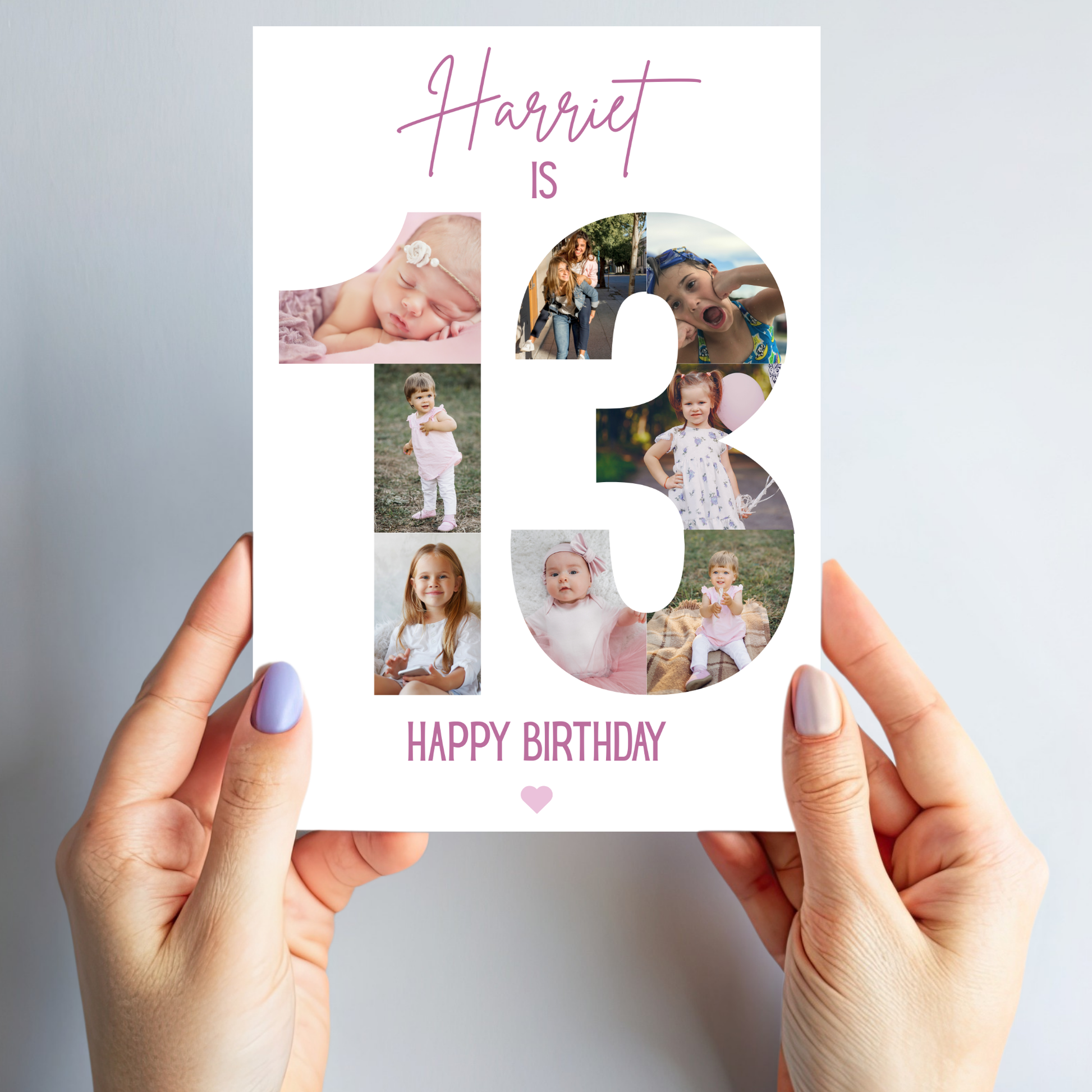 13th Birthday Card - Personalised collage birthday photo card with 8 photos, name & age. A5 printed card with envelope, a unique keepsake for special birthdays.