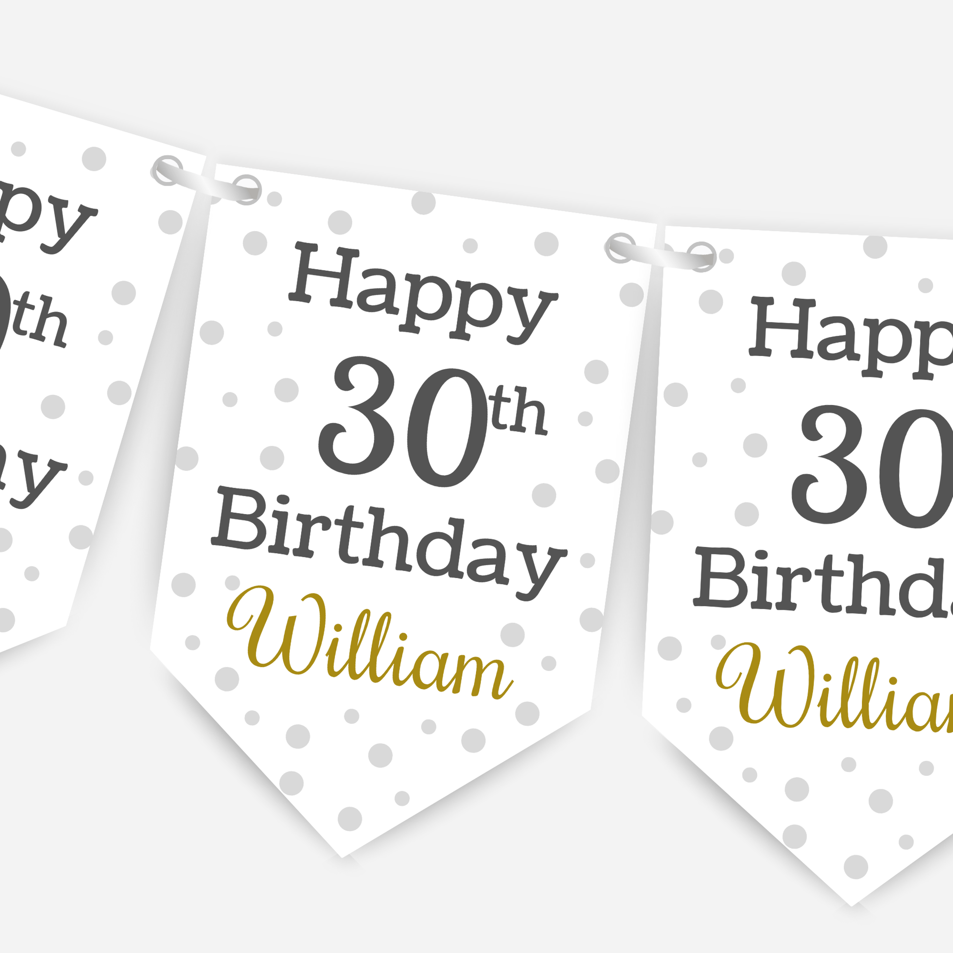 Add a fun touch to your celebration with this printed and personalised bunting, designed in a modern, clean style to suit any age.