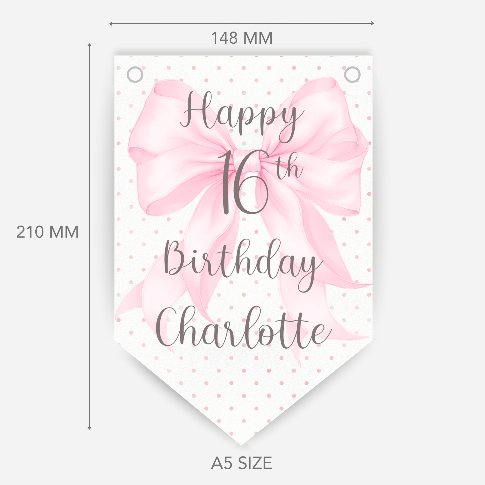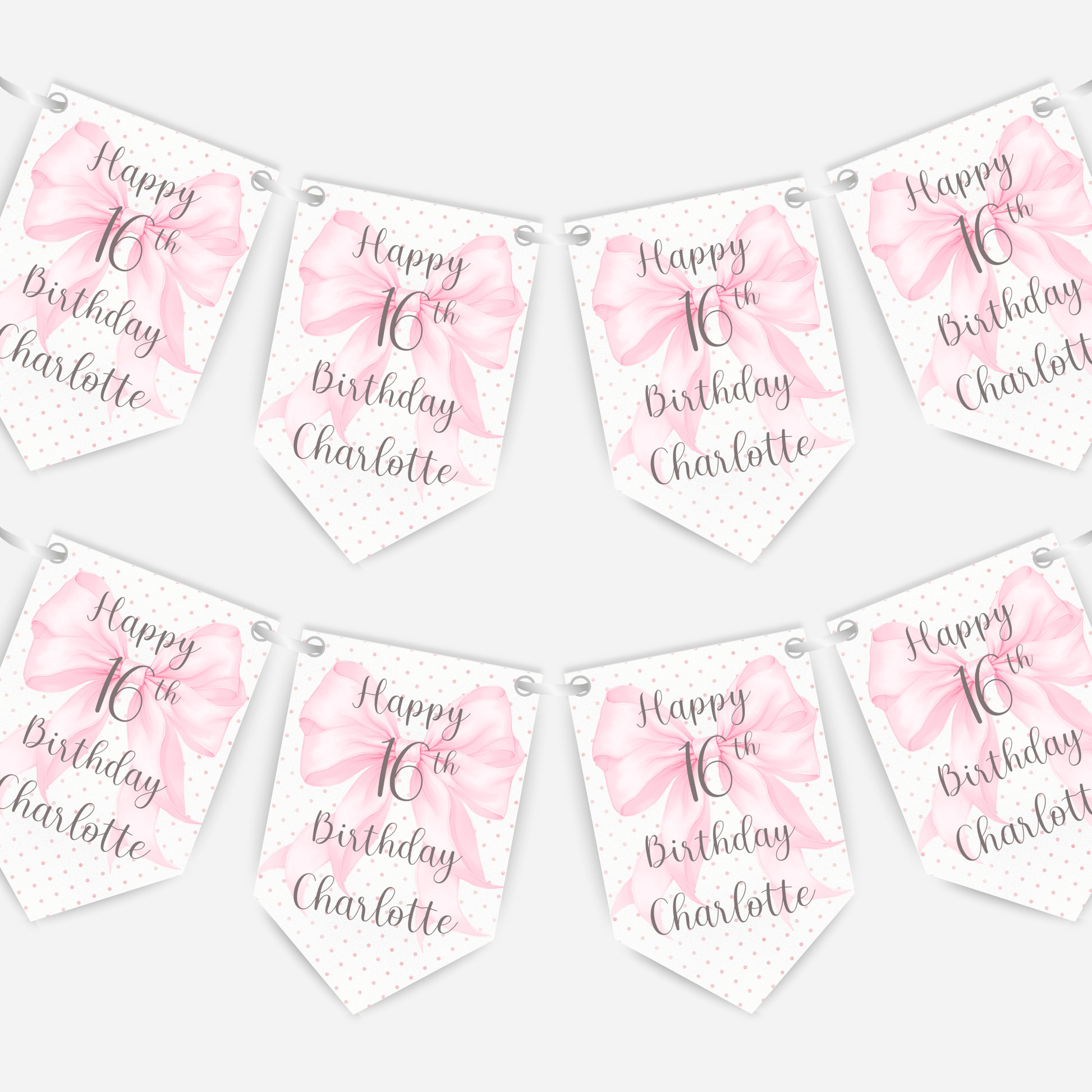 Add a stylish touch to your celebration with this printed and personalised bunting, designed in a pretty pink style to suit any age.