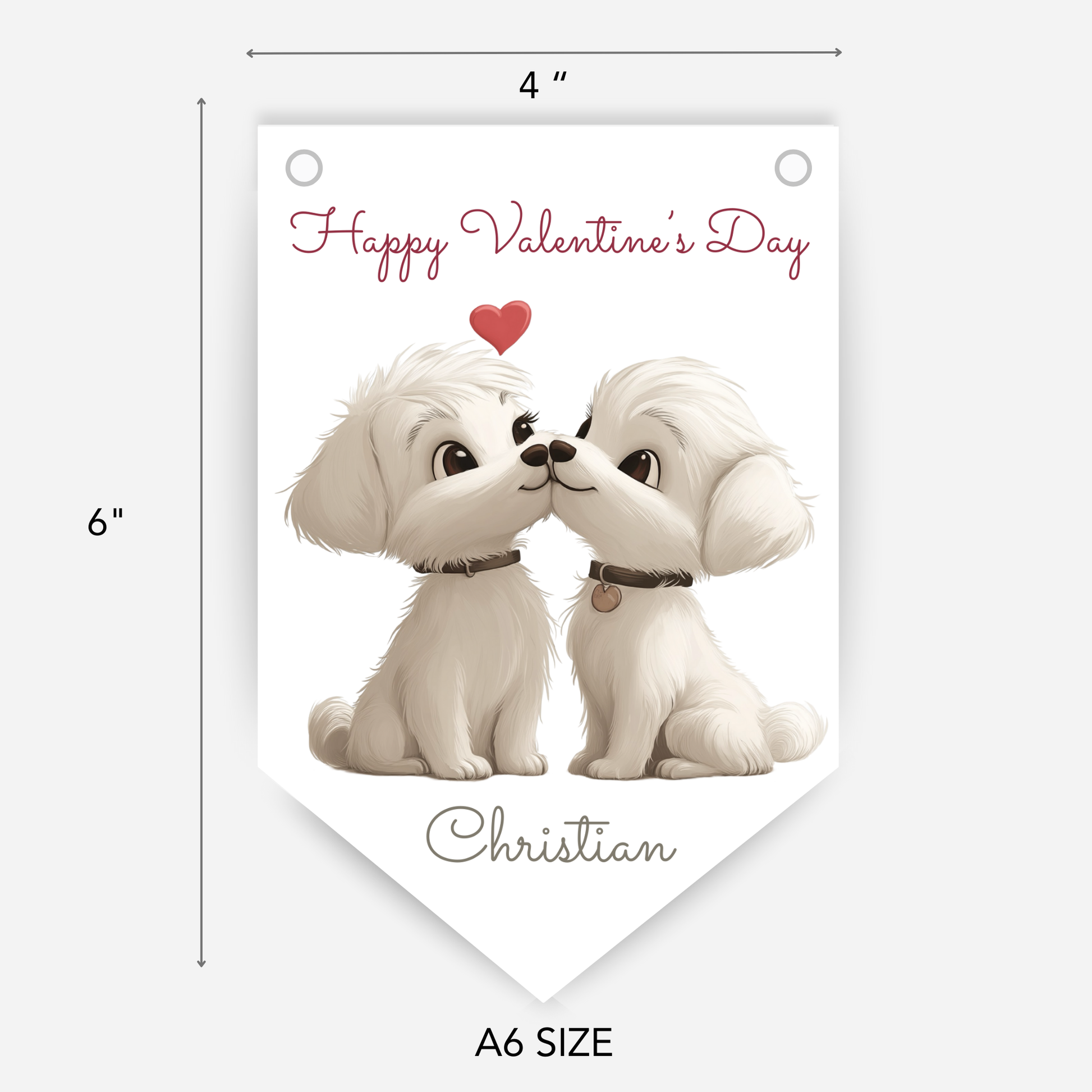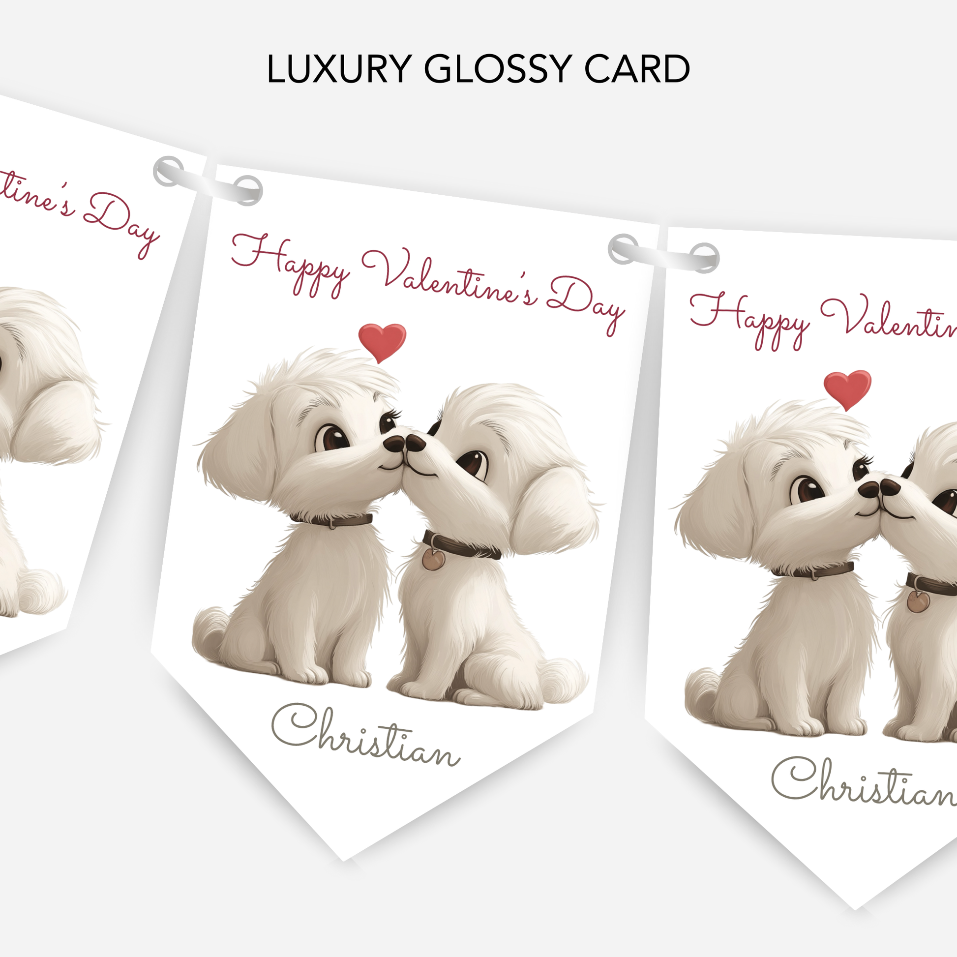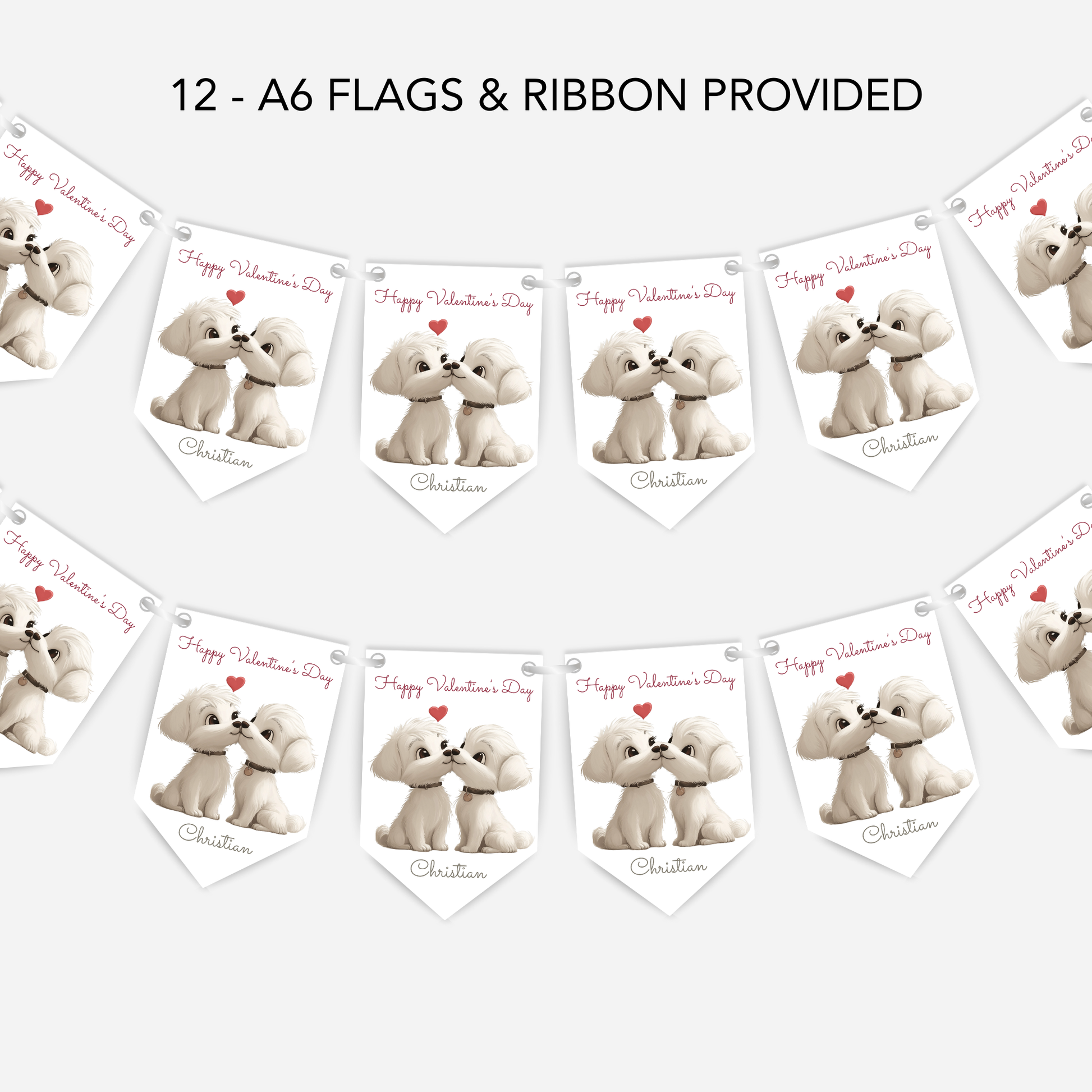 Create a sweet Valentine’s Day display with this personalised cute smaller bunting. Cute puppy dog design, perfect for decorating smaller romantic spaces.