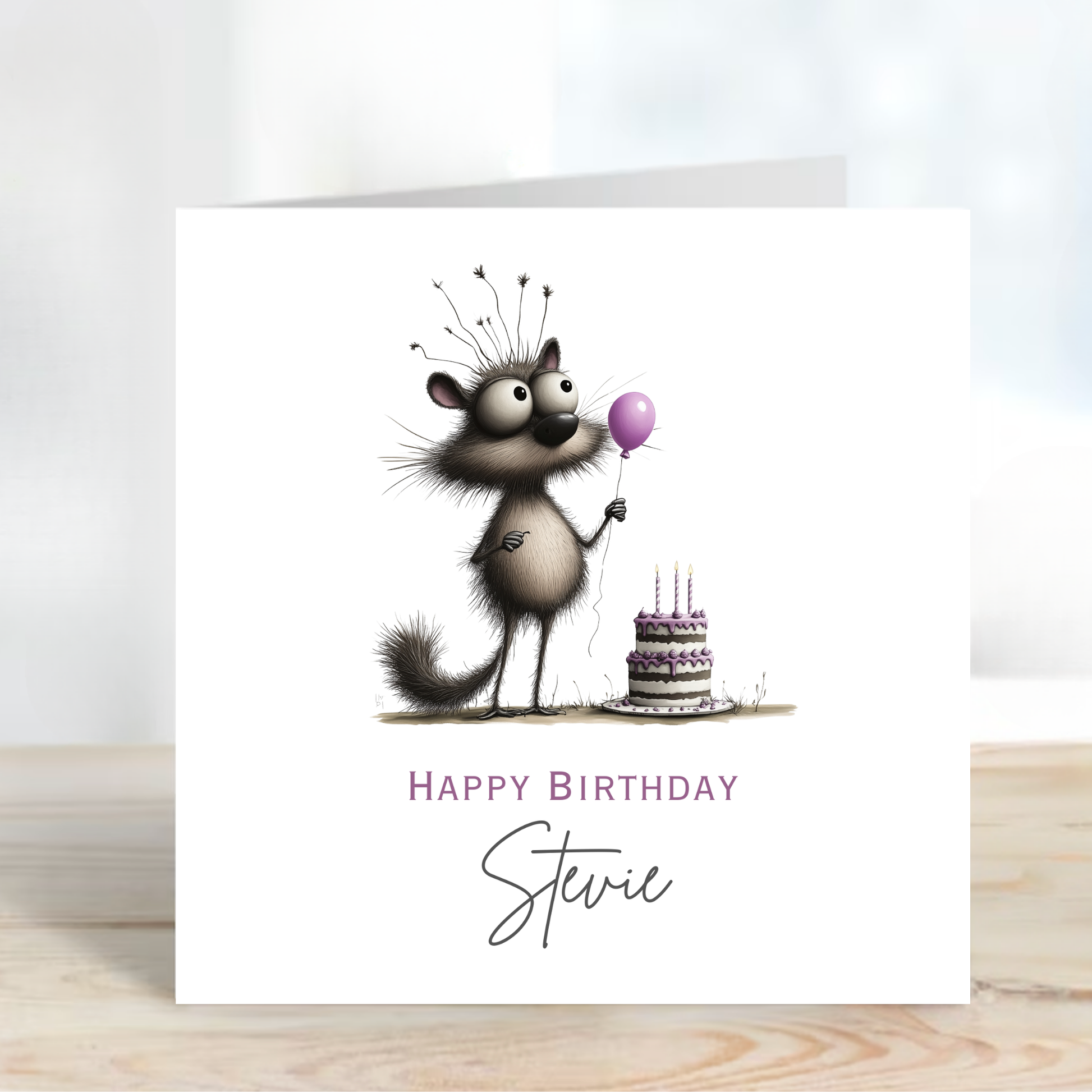 Celebrate their special day with this adorable personalised birthday card, featuring a cute cartoon-style animal, a birthday cake and a colourful balloon. Perfect for any age or milestone — from 1st birthdays to 40th, 50th or beyond — this cheerful design brings a smile to every recipient.