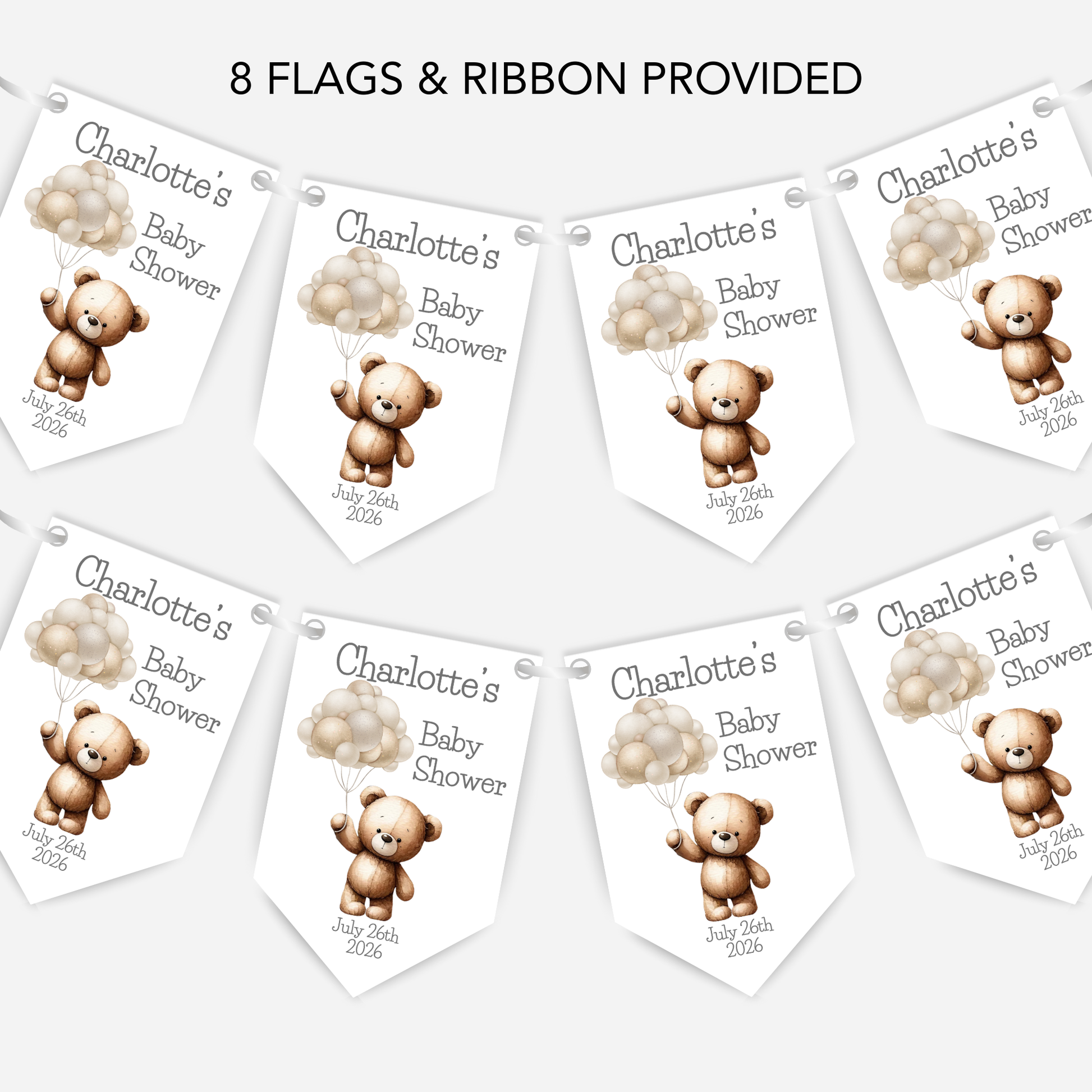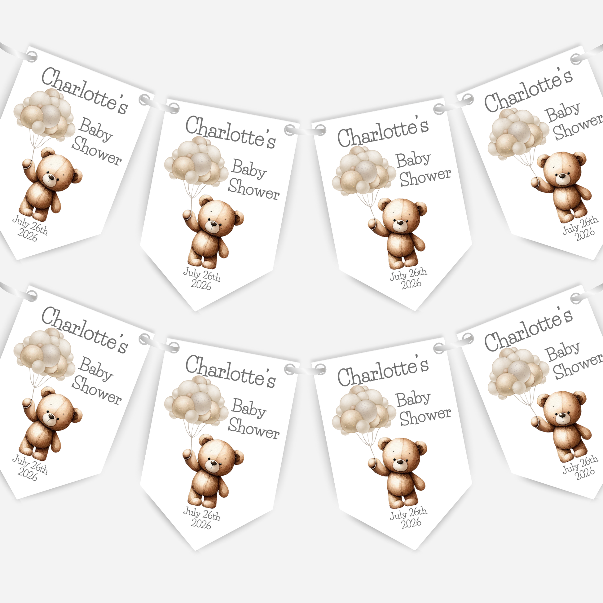 Featuring a gorgeous teddy bear in neutral tones holding balloons, it’s the perfect addition to any baby shower – whether you're expecting a boy, girl, or keeping it a surprise.