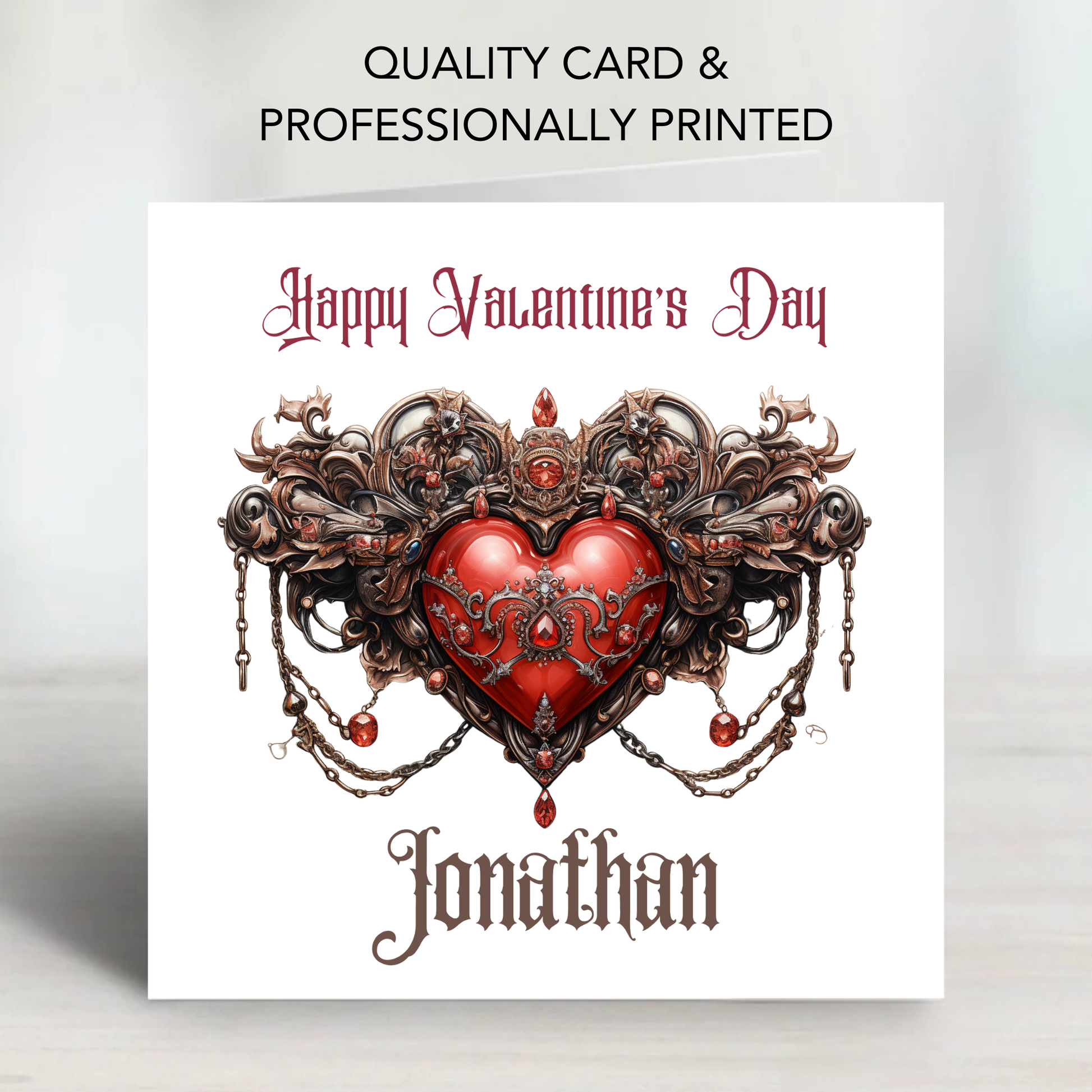 Share the love with this Personalised alternative gothic style Valentine’s Day Card, beautifully printed and customised just for your partner.