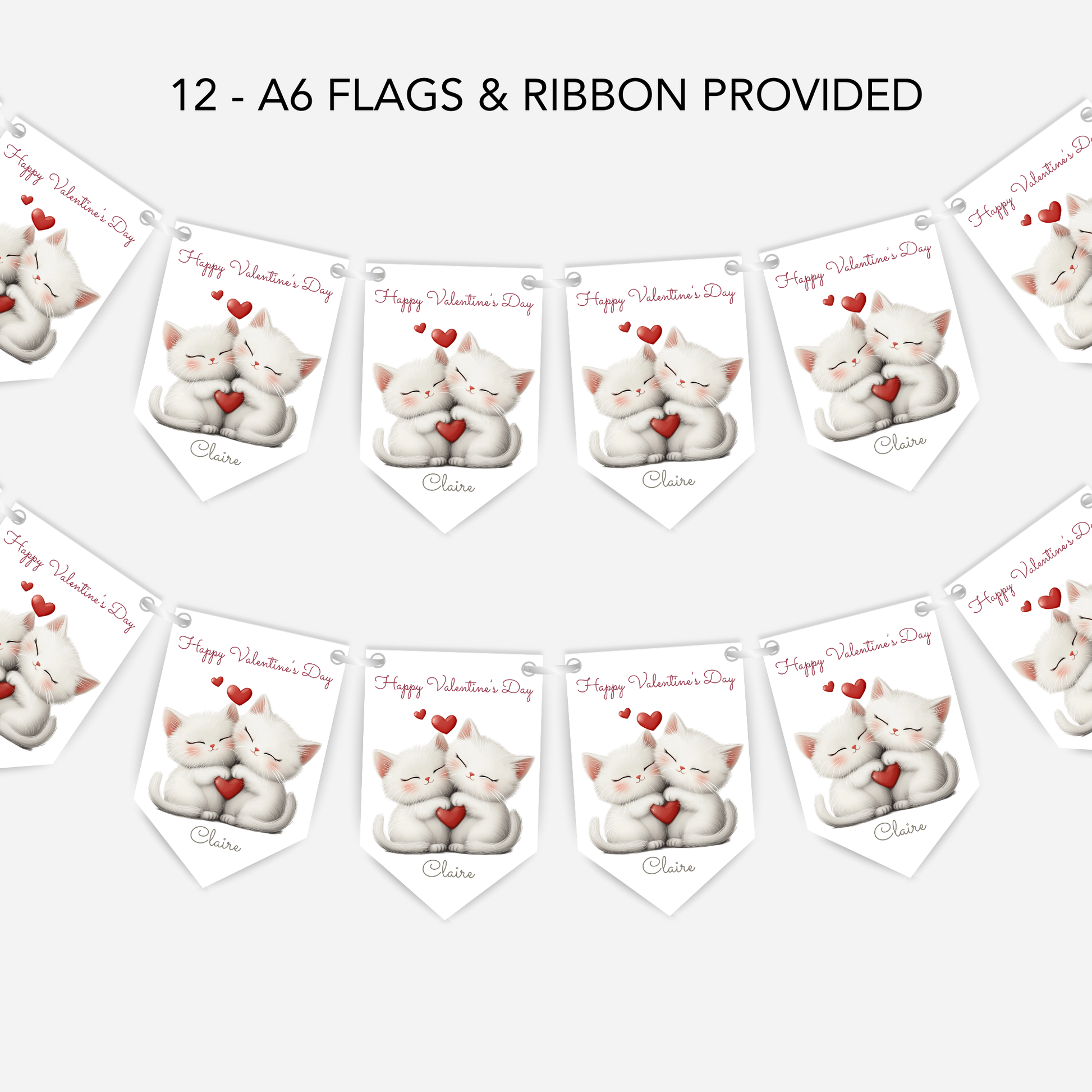 Create a sweet Valentine’s Day display with this personalised smaller bunting. Cute kitten design, perfect for decorating smaller romantic spaces.