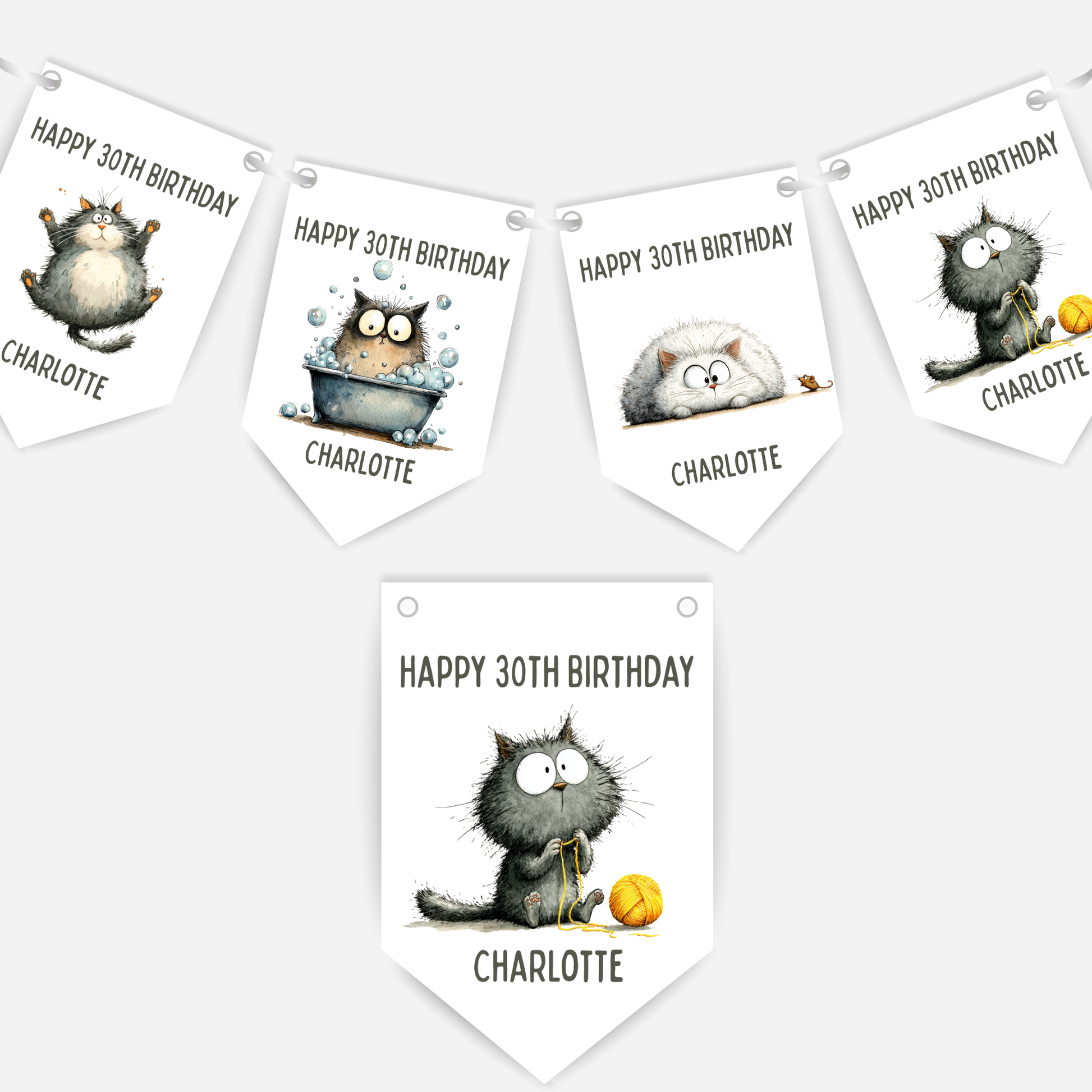 Whimsical Funny Cat Birthday Bunting - For Any Age – B260